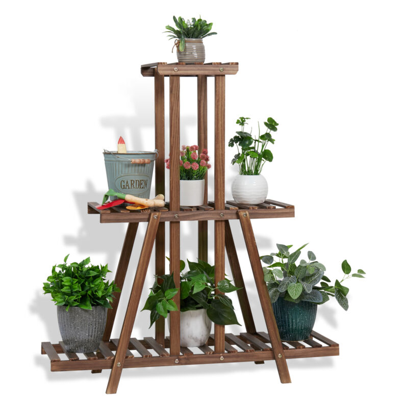 3 Tier Wood Plant Stand Tapered Design Pot Holder Shelf Exhibiting Ladder Rack
