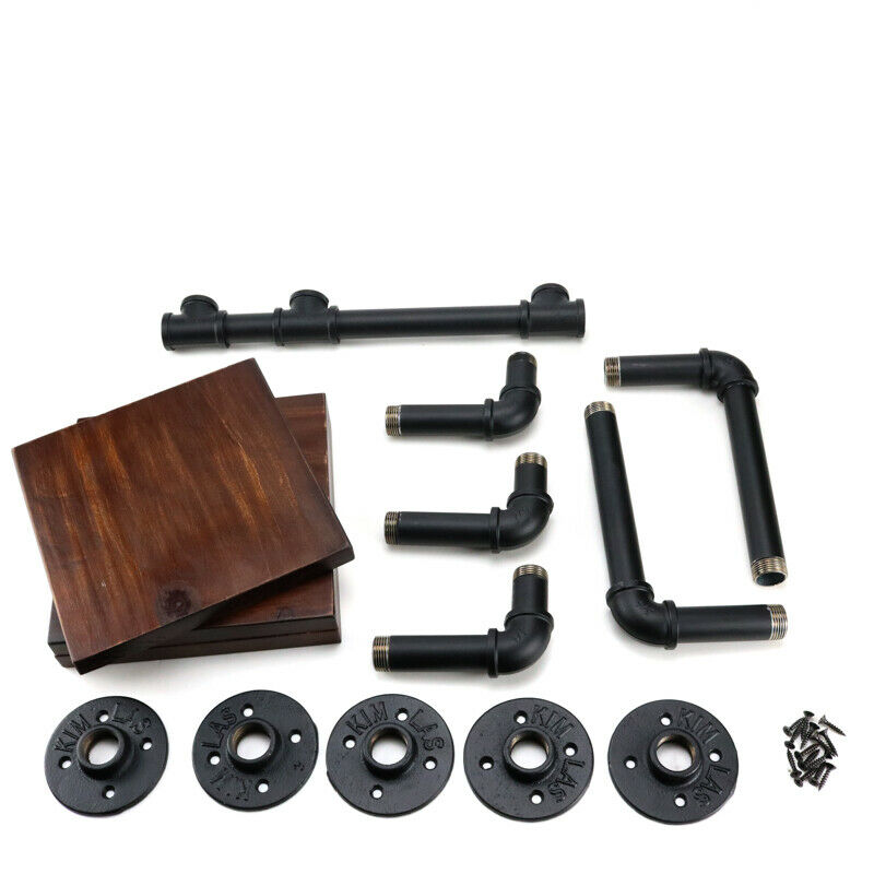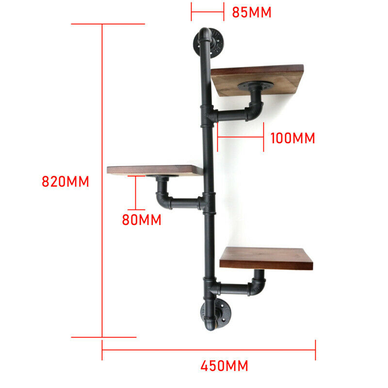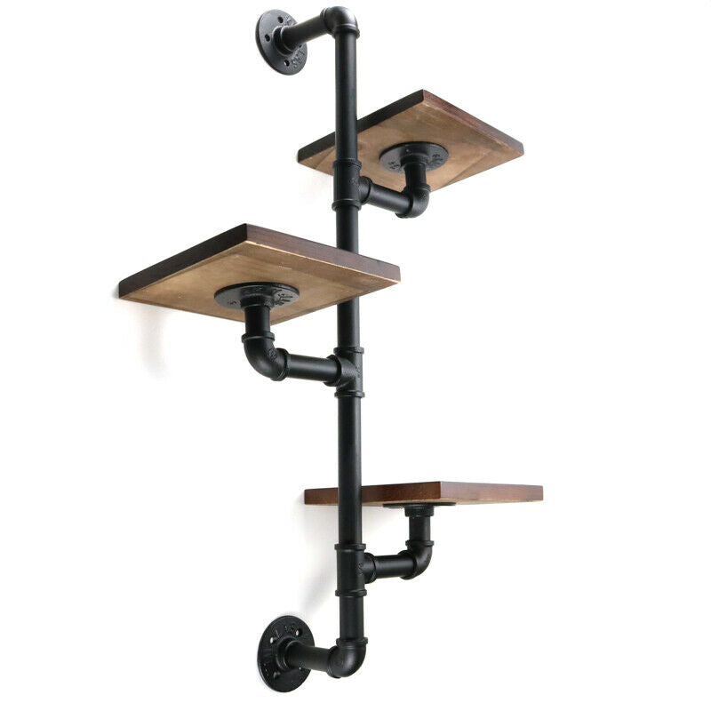 3 Tiers Industrial Pipe Wooden Metal Wall Floating Shelf Storage Shelving Unit