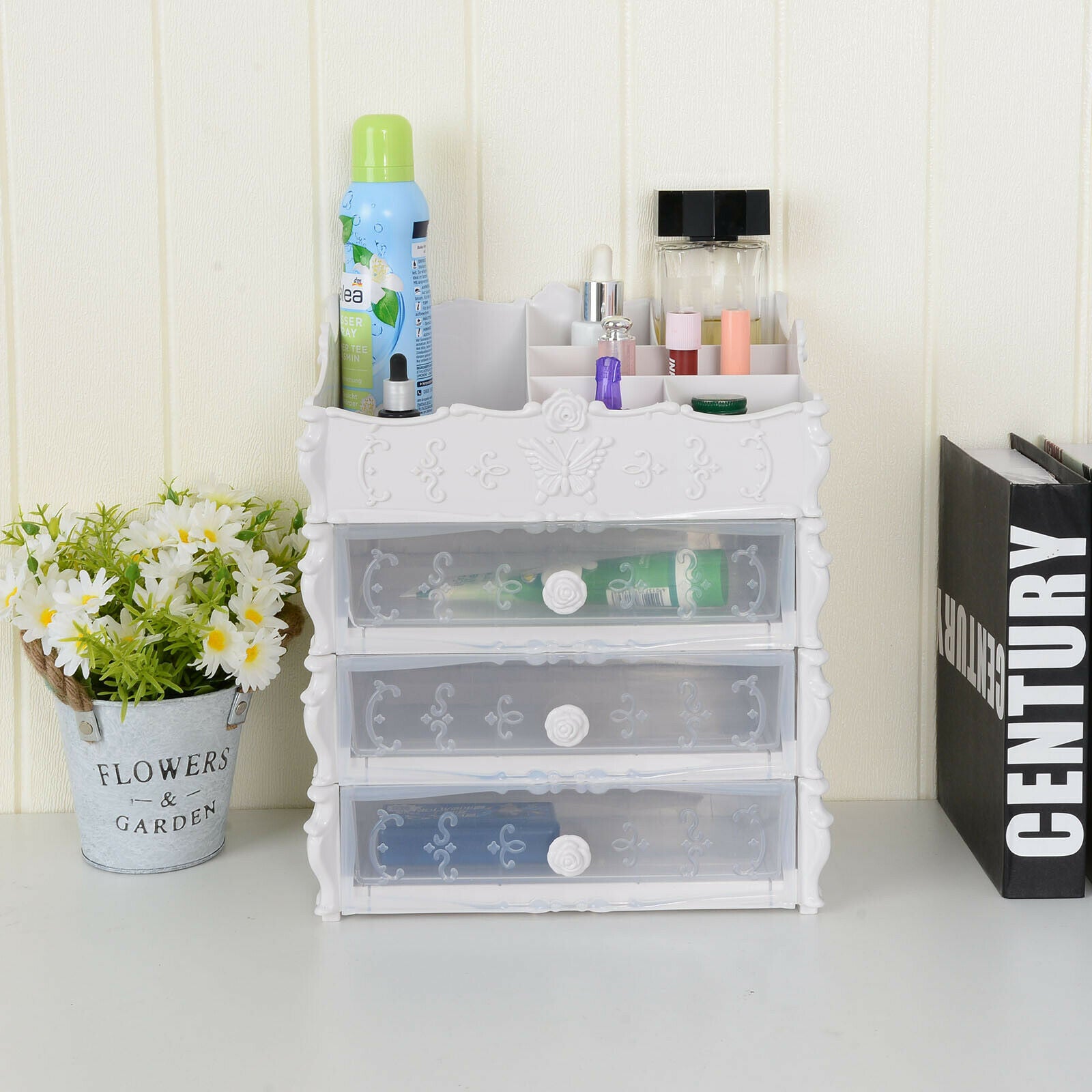 3 Tiers Makeup Case Desktop Storage Box Cosmetic Organizer Holder Drawer Jewelry