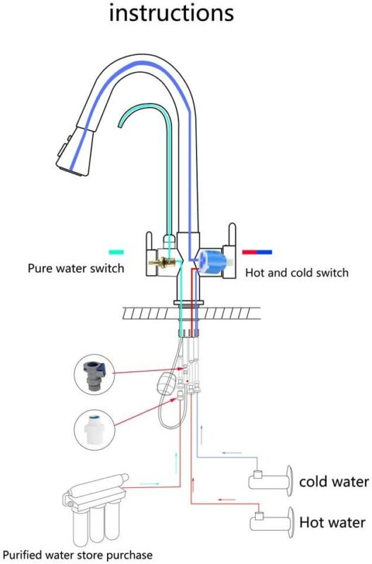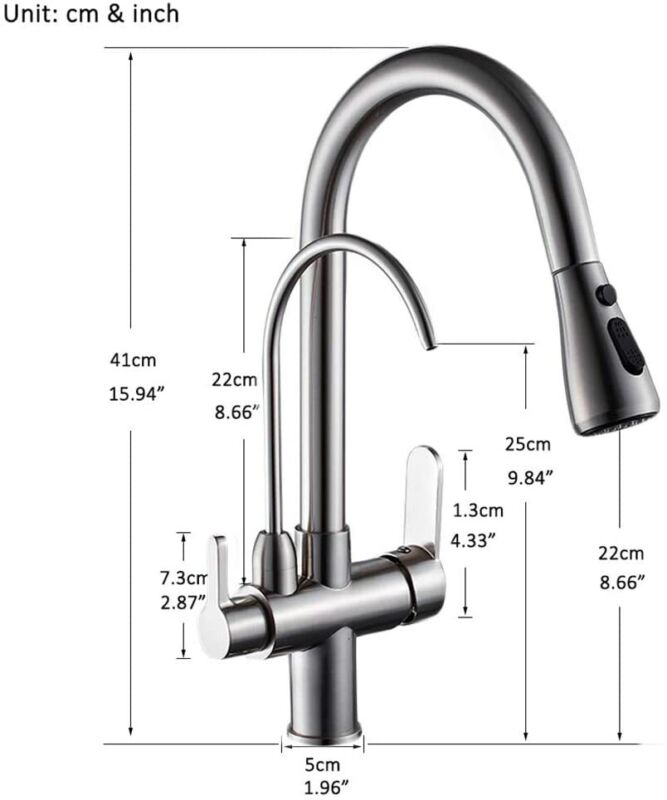 3 Ways Kitchen taps Pure Water Filter Pull Out Spray 360° Swivel Spout Mixer Tap