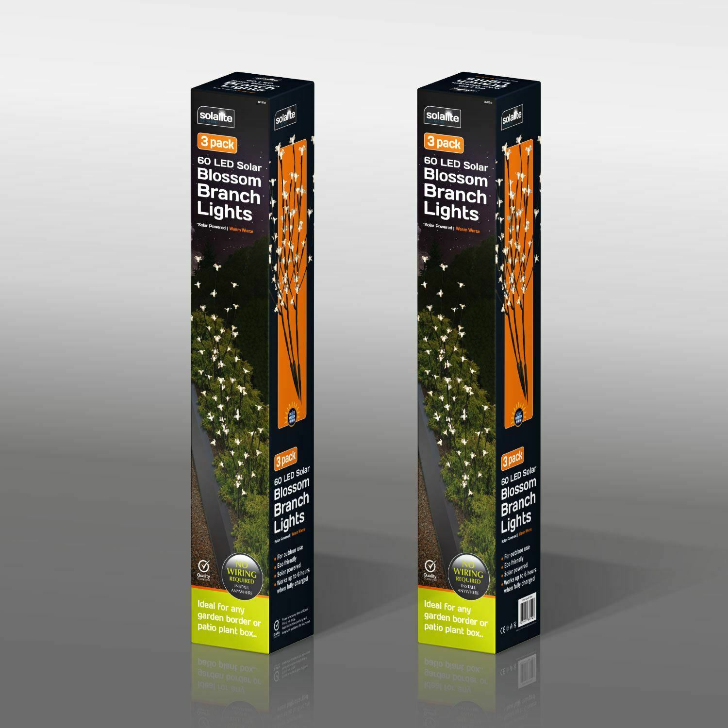 3 X WARM WHITE SOLAR GARDEN ORNAMENTAL STYLISH BLOSSOM BRANCH TREE 60 LED LIGHTS