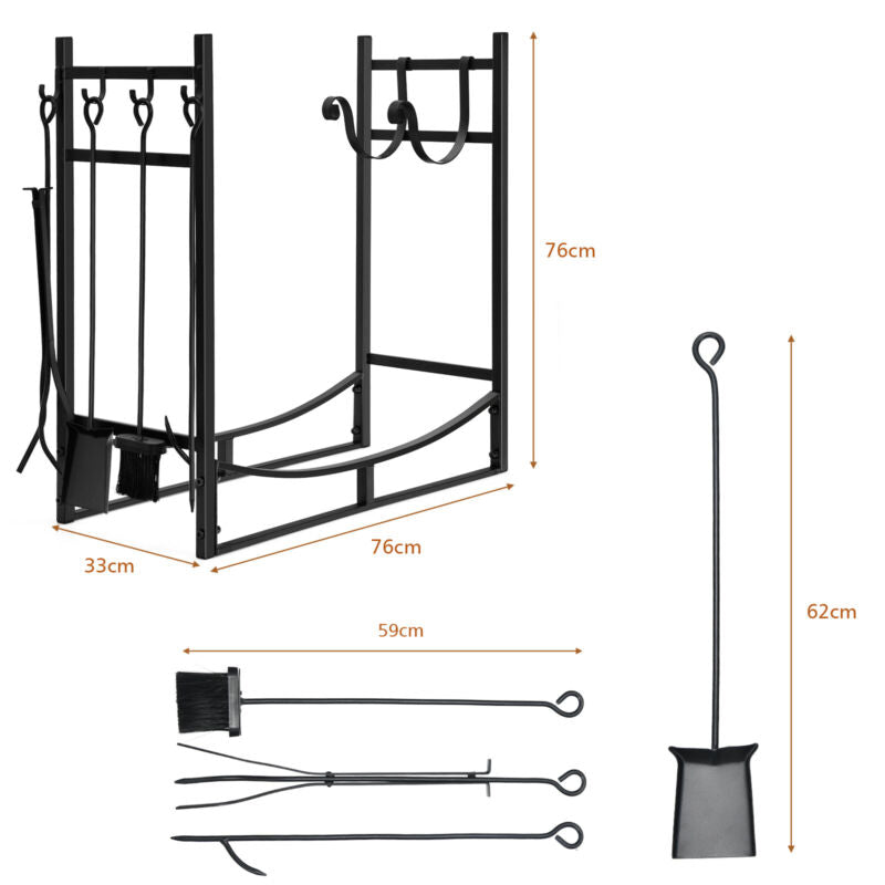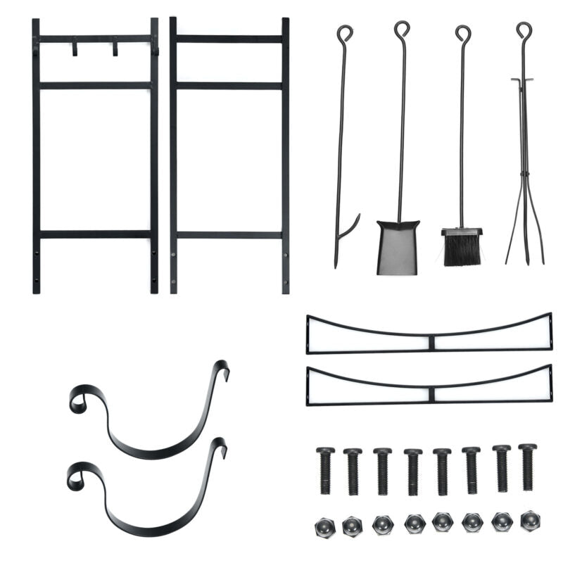 30” Fireplace Log Rack Wood Stacker Stand W/ 4 Tool Set Kindling Holders