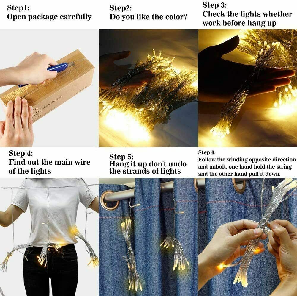 300 LED Curtain Fairy Lights Indoor/Outdoor Wedding Party Garden Decor