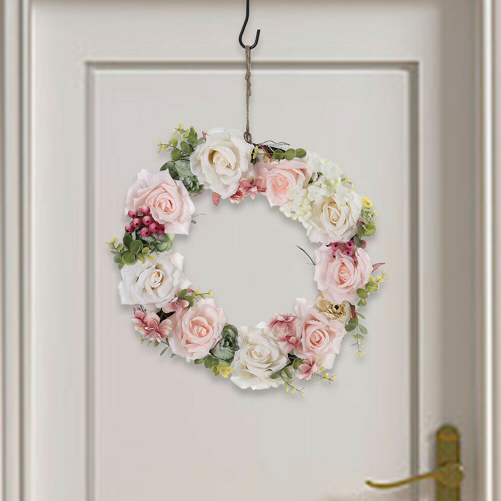 30cm Artificial Rose Flower Wreath Wedding Front Door Hanging Garland Ring Decor