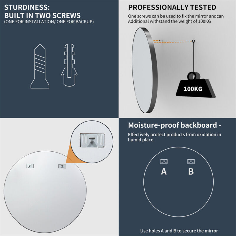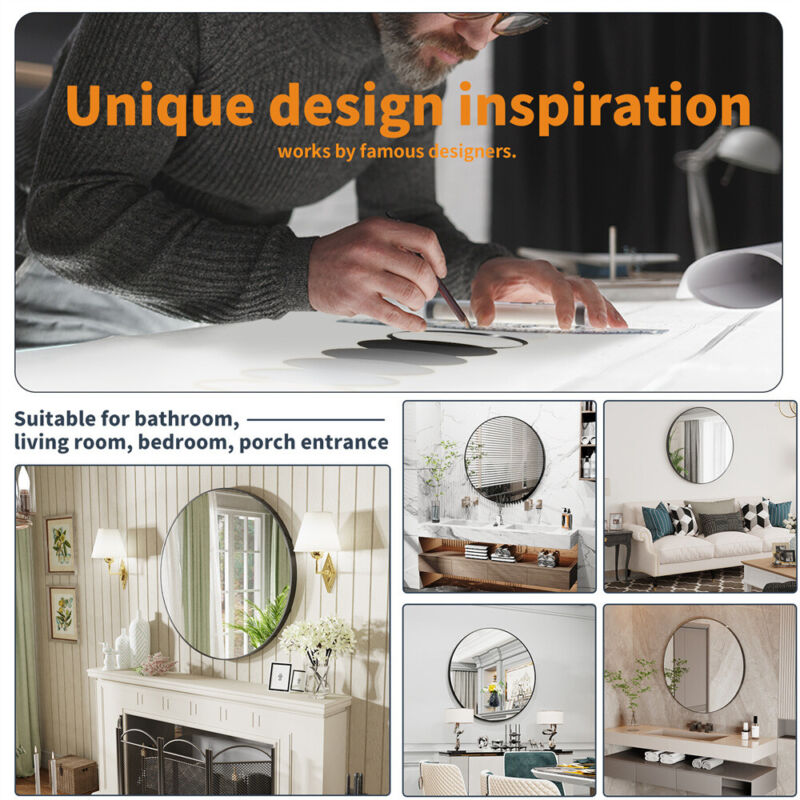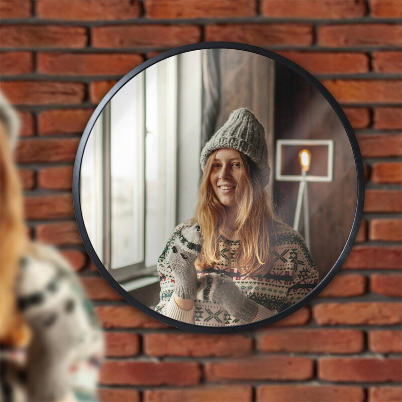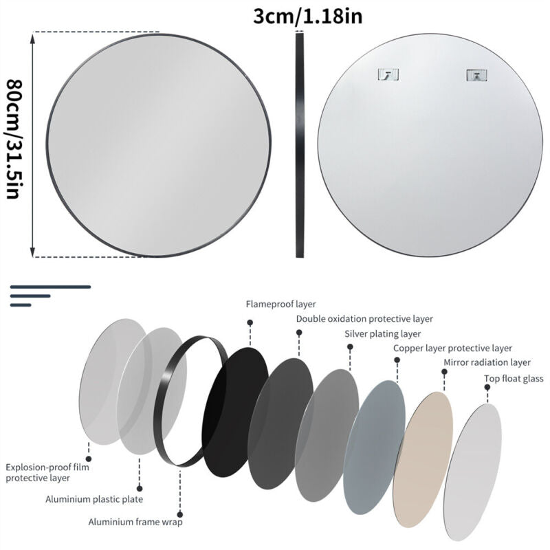 32 Inch XXL Round Wall Mirror Rustic Accent Decor Table Mirror Mounted Washroom