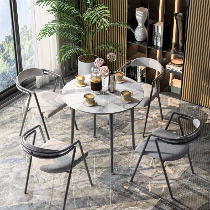 32" Round Modern Marble Kitchen Dining Table Breakfast Dining Room Furniture
