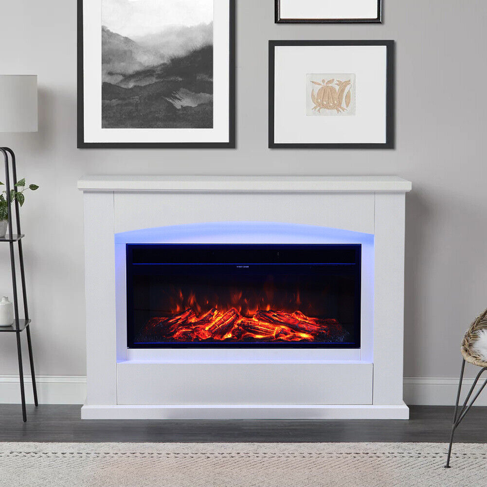 34 Inch Electric Fireplace Heater White MDF Fire Suite with Remote Control 1800W