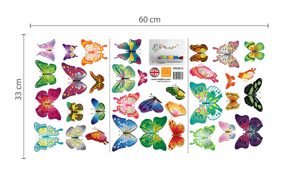 34pcs Colourful Butterflies Wall Decals Mural Home art paper Decoration Mural