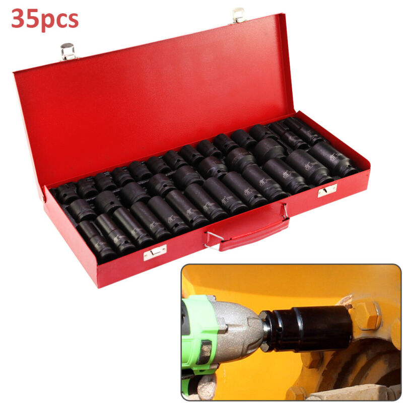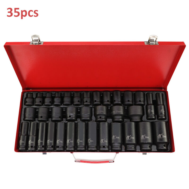 35pcs 1/2" Inch Long Reach Impact Sockets Drive Deep Impact Socket Set 8-32mm