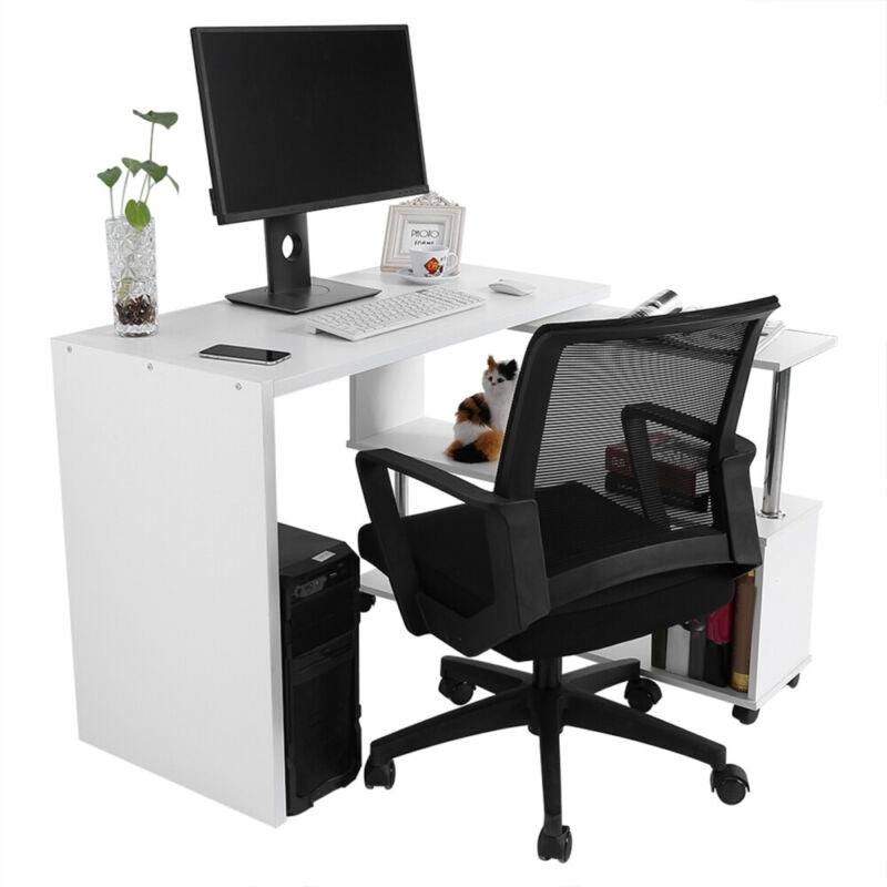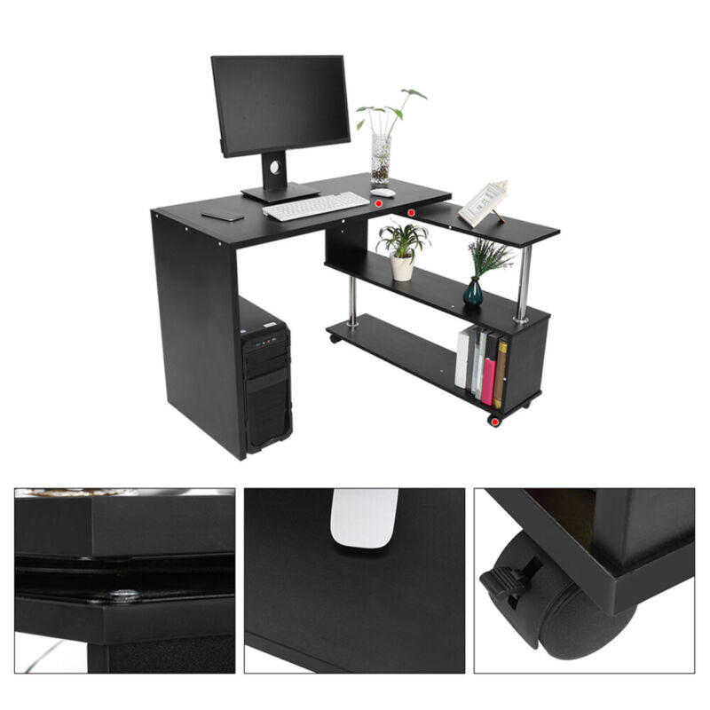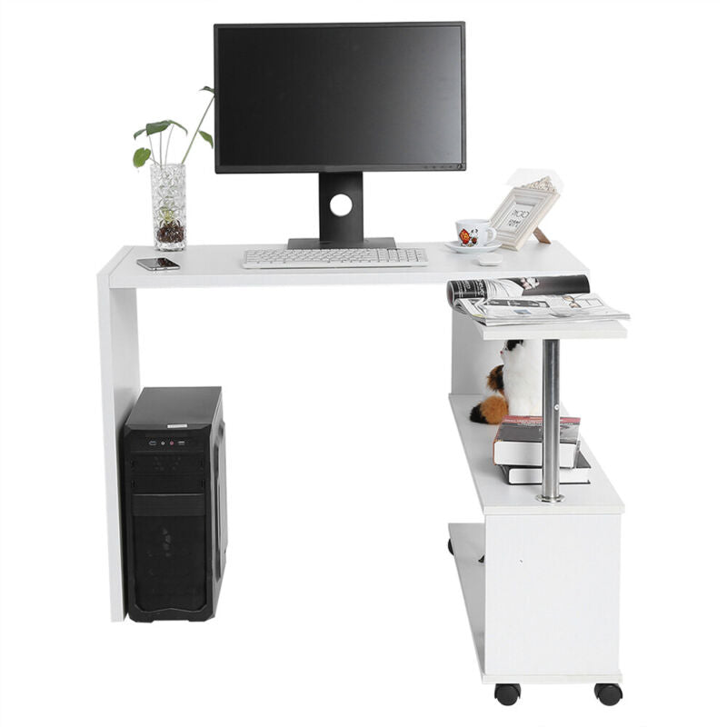 360° Rotatable Corner Desk Storage Shelf Combo Workstation L-Shaped Table Office