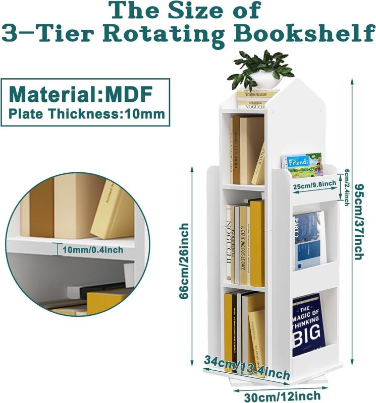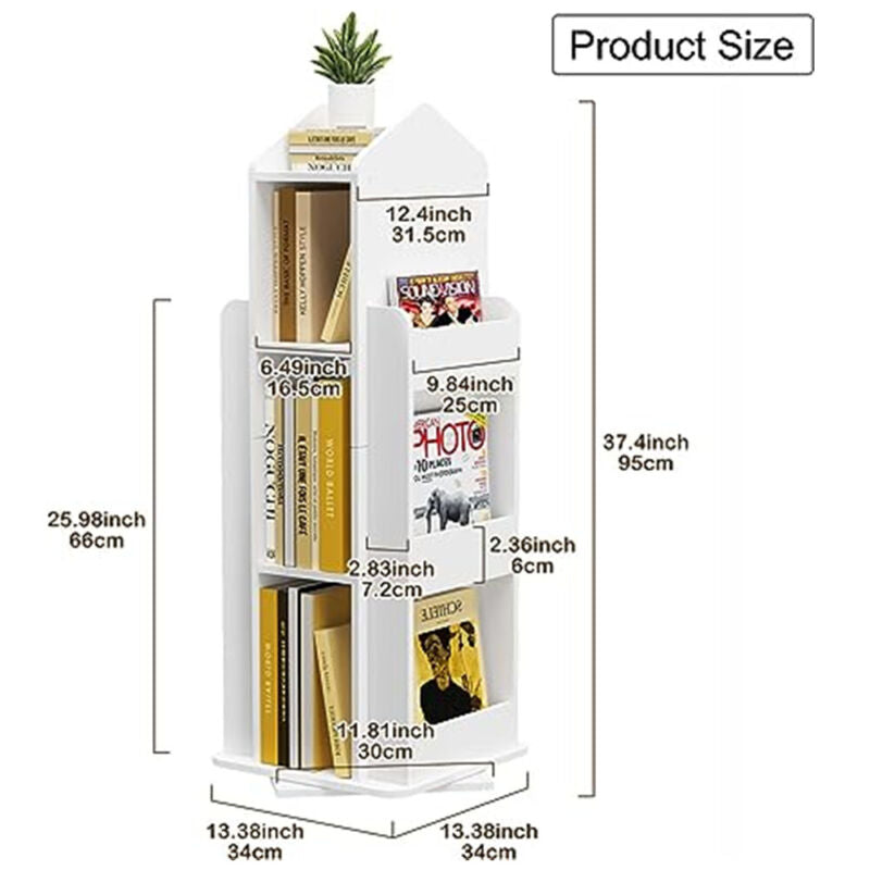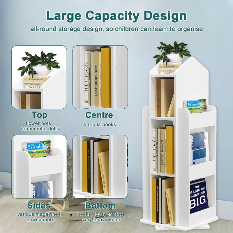 360° Rotating 3 Tier Bookcase Children Kids Book Shelf Rack Storage Bookshelf
