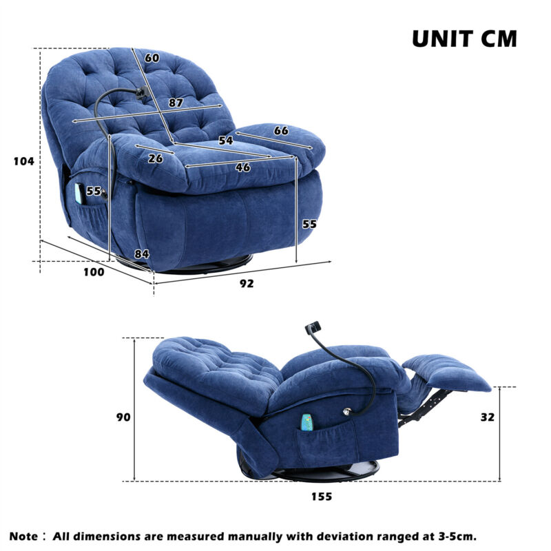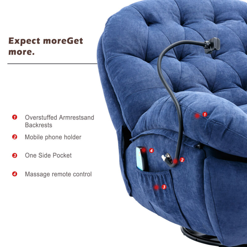360° Rotating Chair Swivel Chair Power Recliner Chair with heat and Massage QA