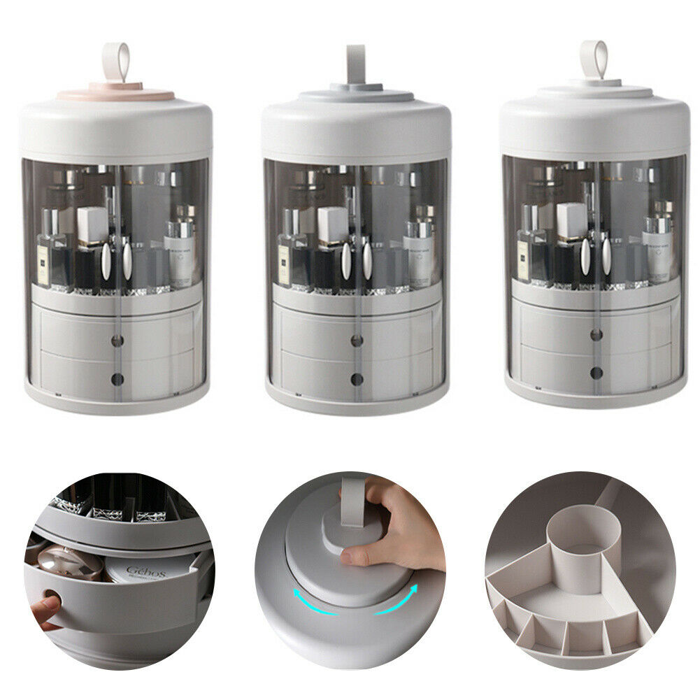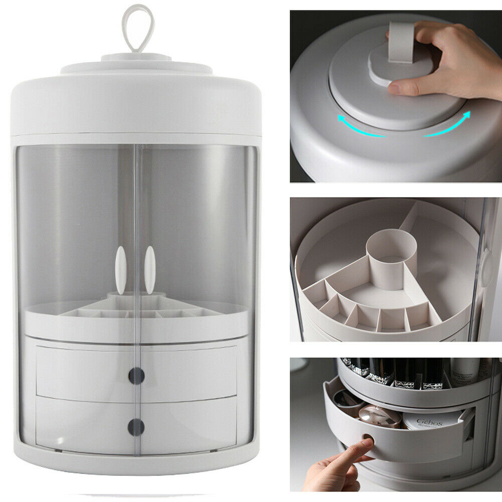 360 Rotating Makeup Organiser Case Cosmetic Storage Box Perfume Display Stand UK
