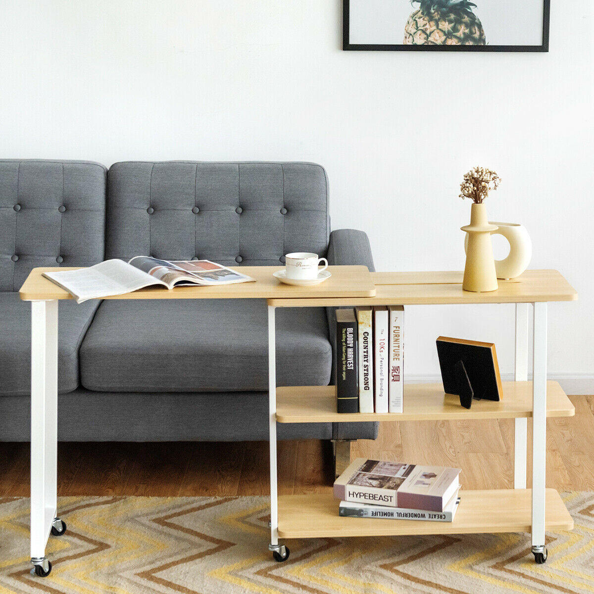 360° Rotating Side Table Sofa End Desk w/Wheels Laptop Workstation Home Office