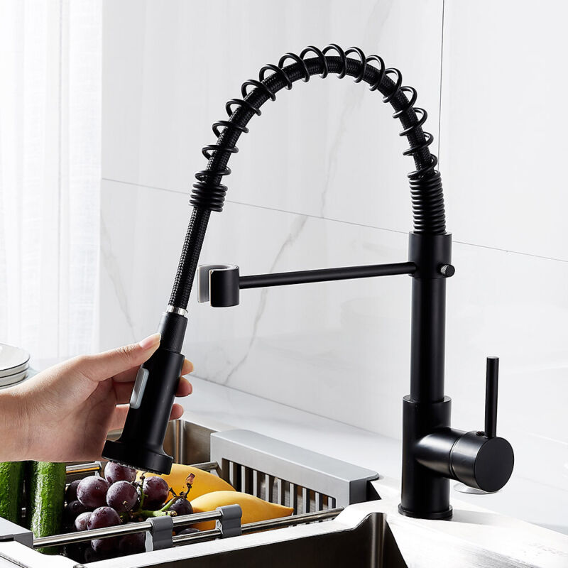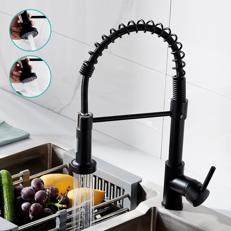 360° Rotation Swivel Tap Spray Mixer Kitchen Sink Mixing Taps Spring Neck Chr SP