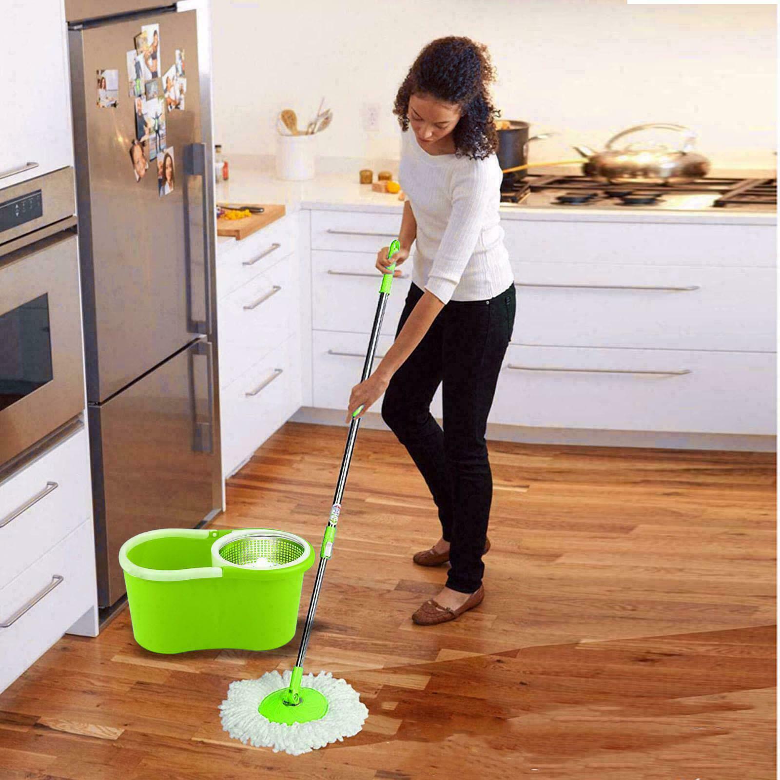 360 Spin Floor Mop & Bucket Set With 2 Mop Heads Floor Cleaner Cleaning Rotating