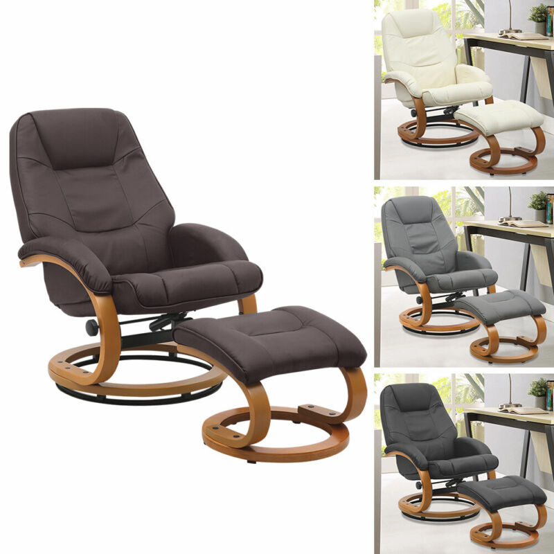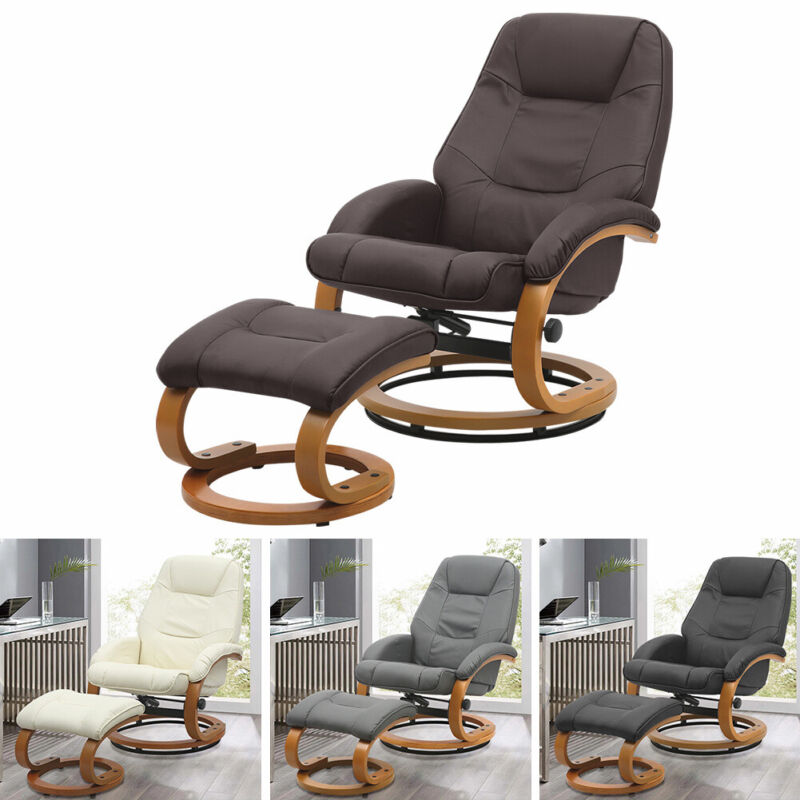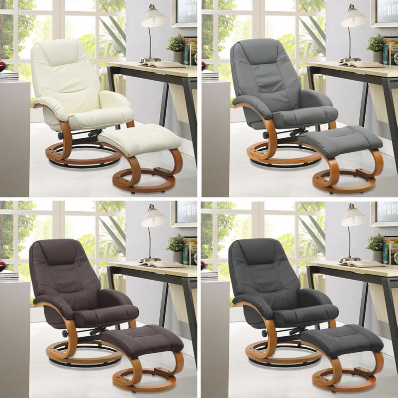 360° Swivel Recliner Lounge Sofa Chair Footrest Footstool PU Leather Wood Base
