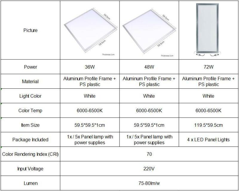 36W/48W/72W LED Panel Ceiling Light Recessed Ceiling Lamp Cool White 6500K