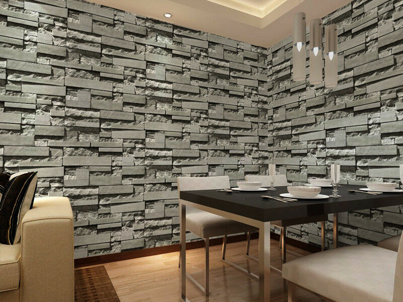 3D Effect Grey Brick Block Non woven Wall Papers Living Room Decor uk