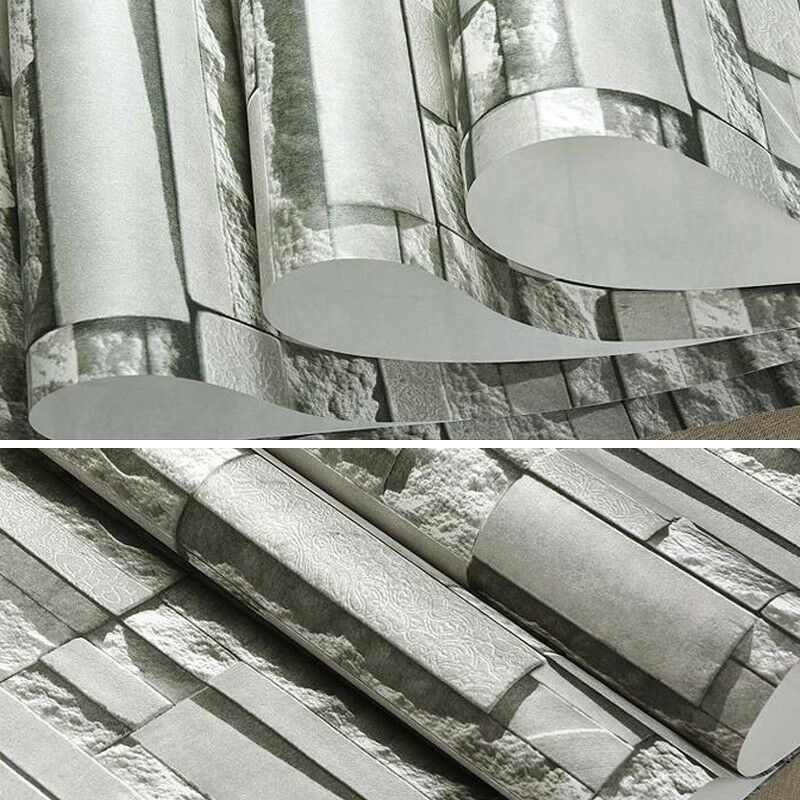 3D Effect Grey Brick Block Non woven Wall Papers Living Room Decor uk