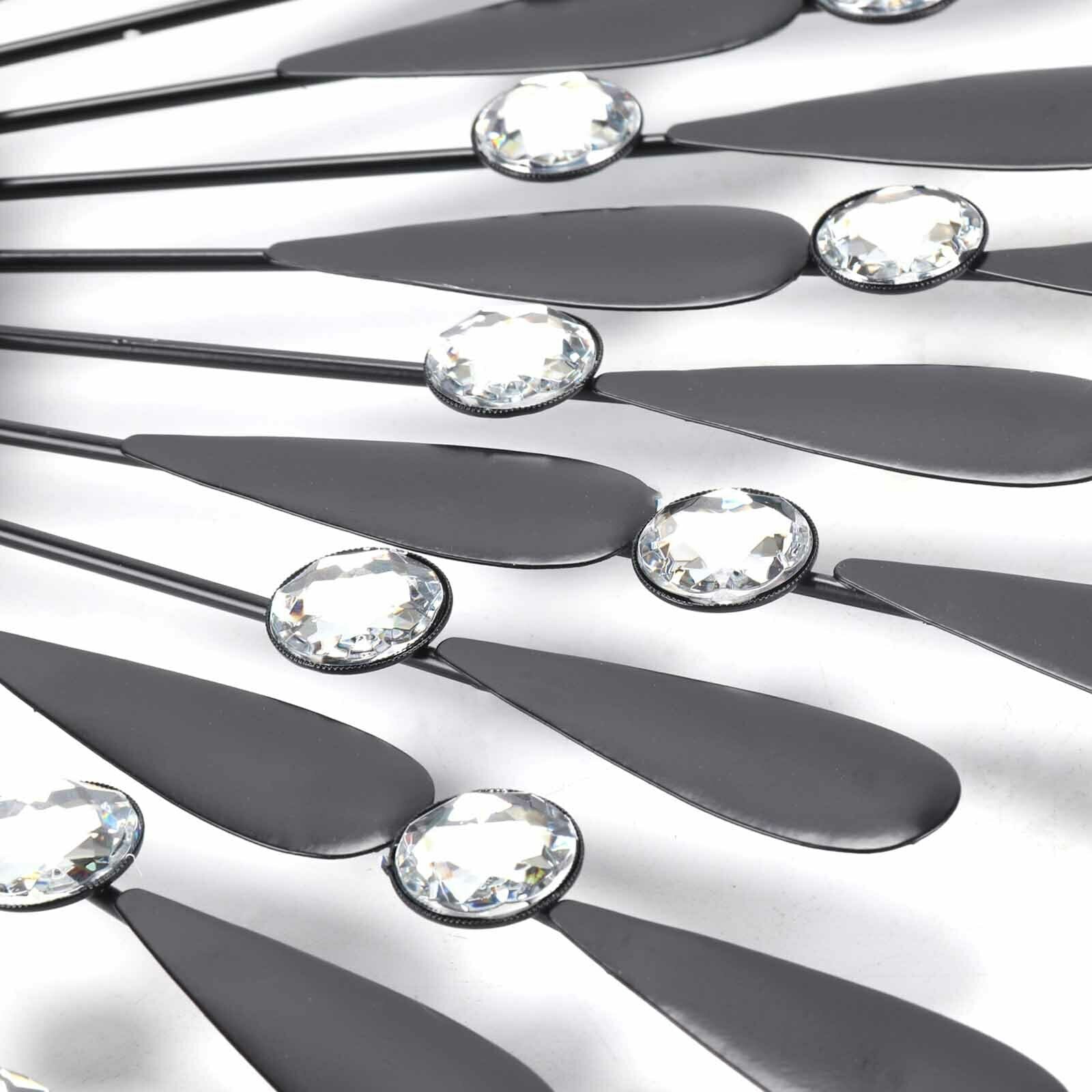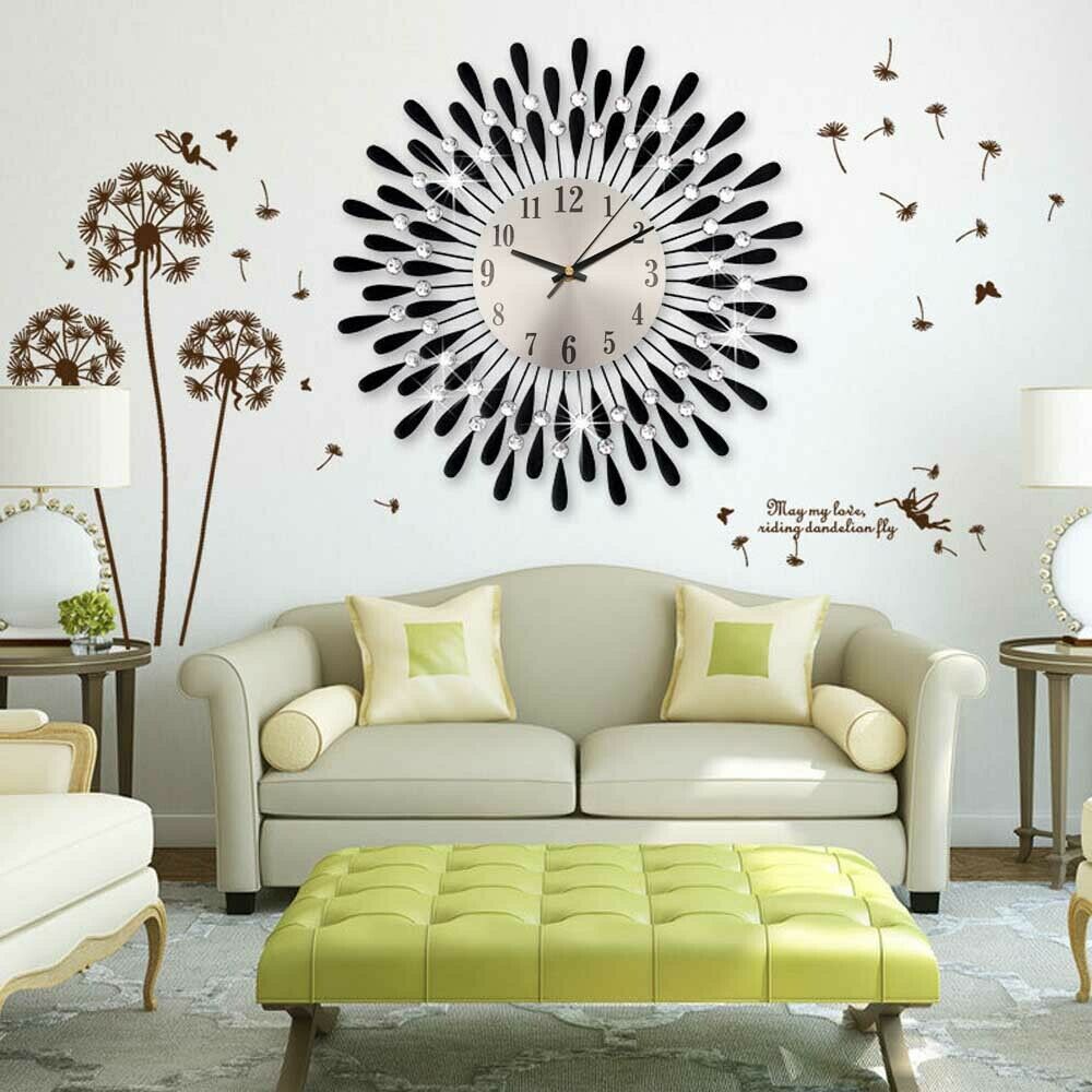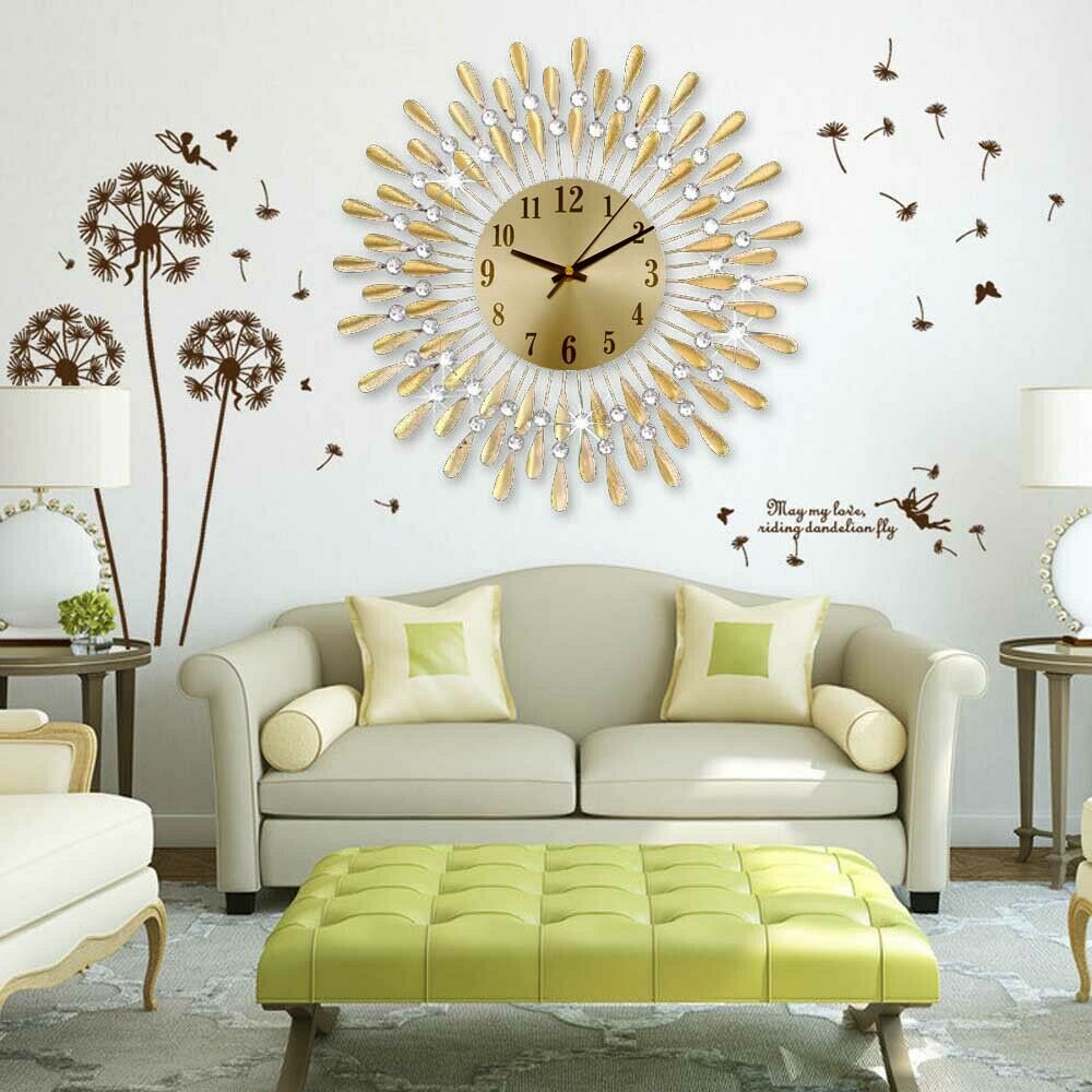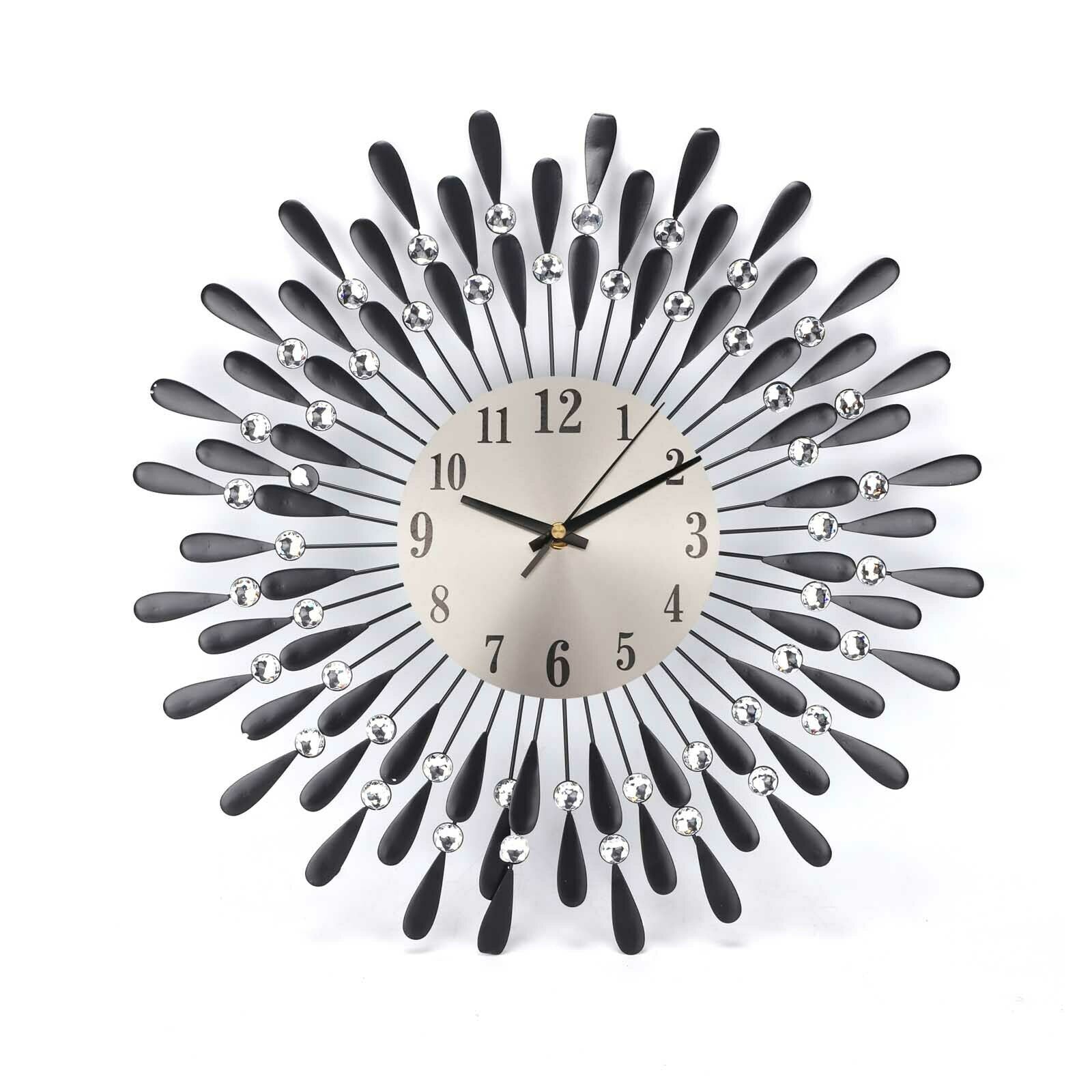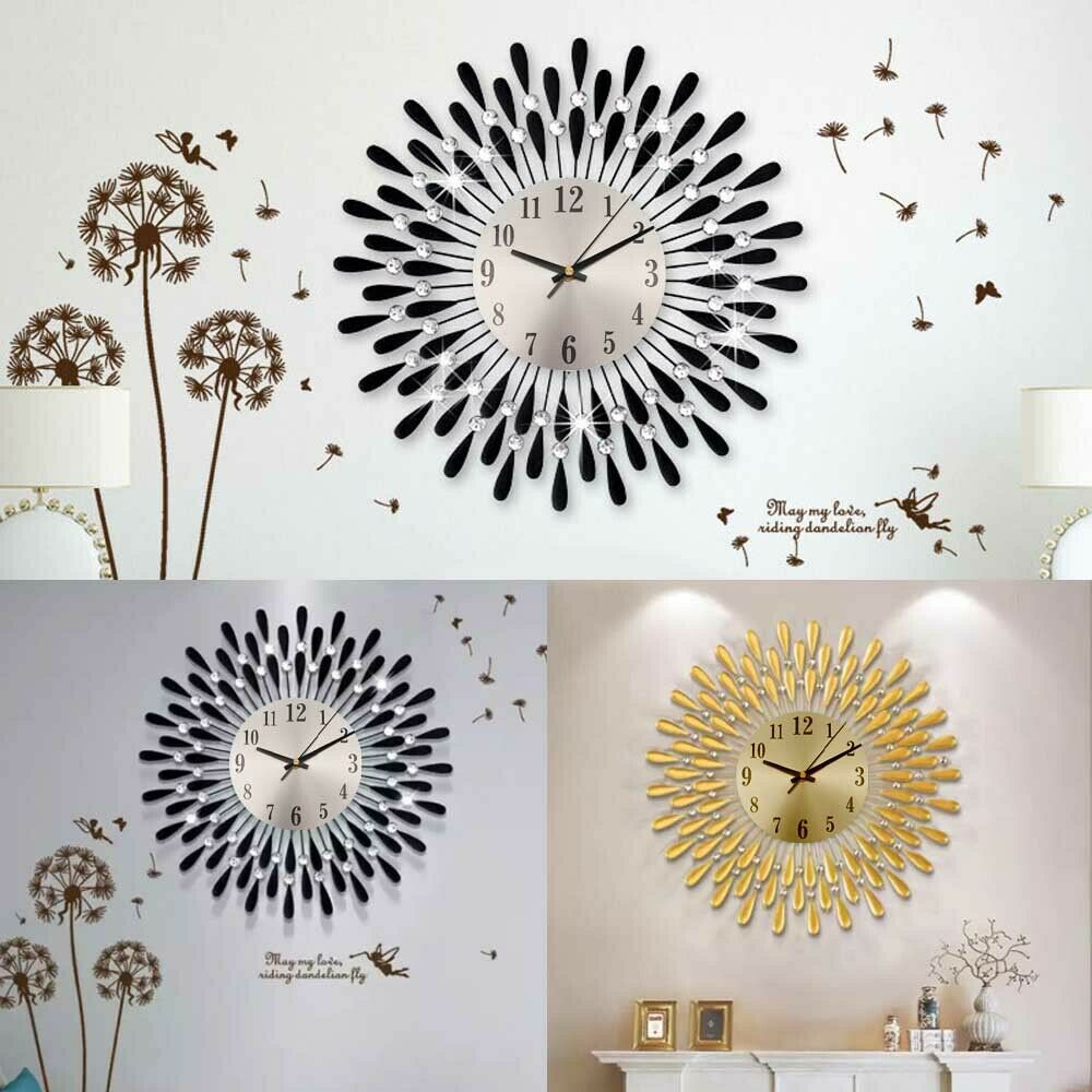 3D Large Diamante Beaded Crystal Jeweled Sunburst Wall Clock Living Room Kitchen