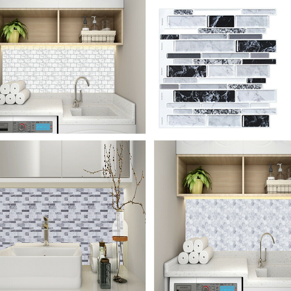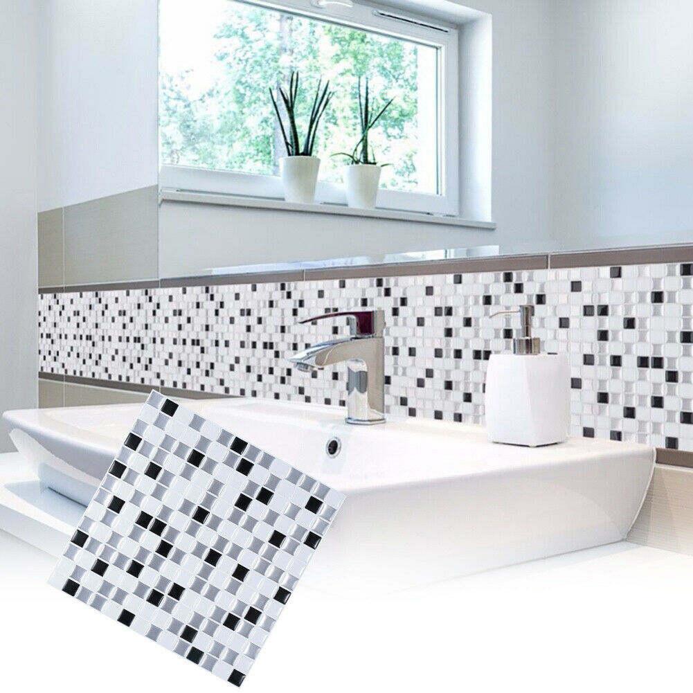 3D Self-Adhesive Mosaic Wall Tile Sticker waterproof Kitchen Bathroom Decal UK
