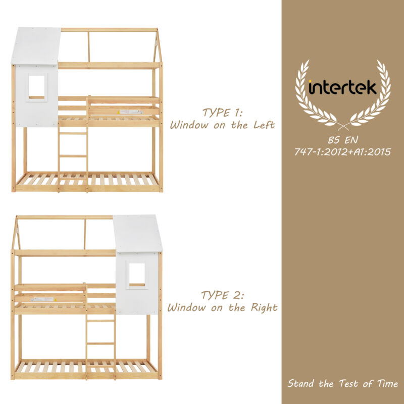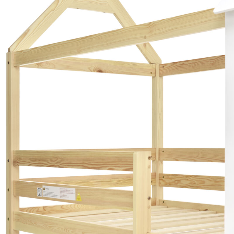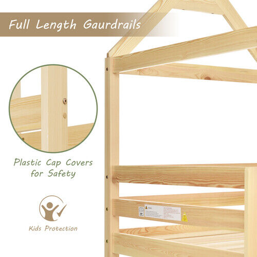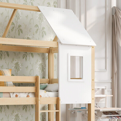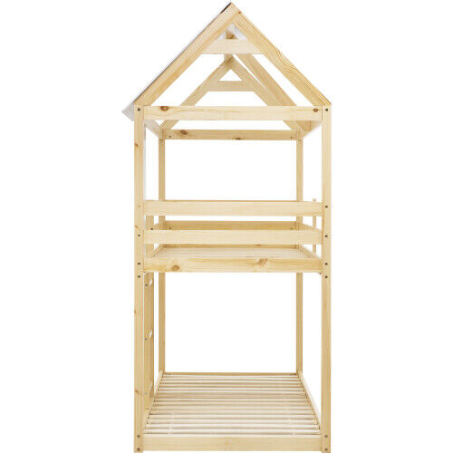 3FT Double Kids Bunk Beds Wooden Frame Kids High Sleeper Pine Wood House Canopy