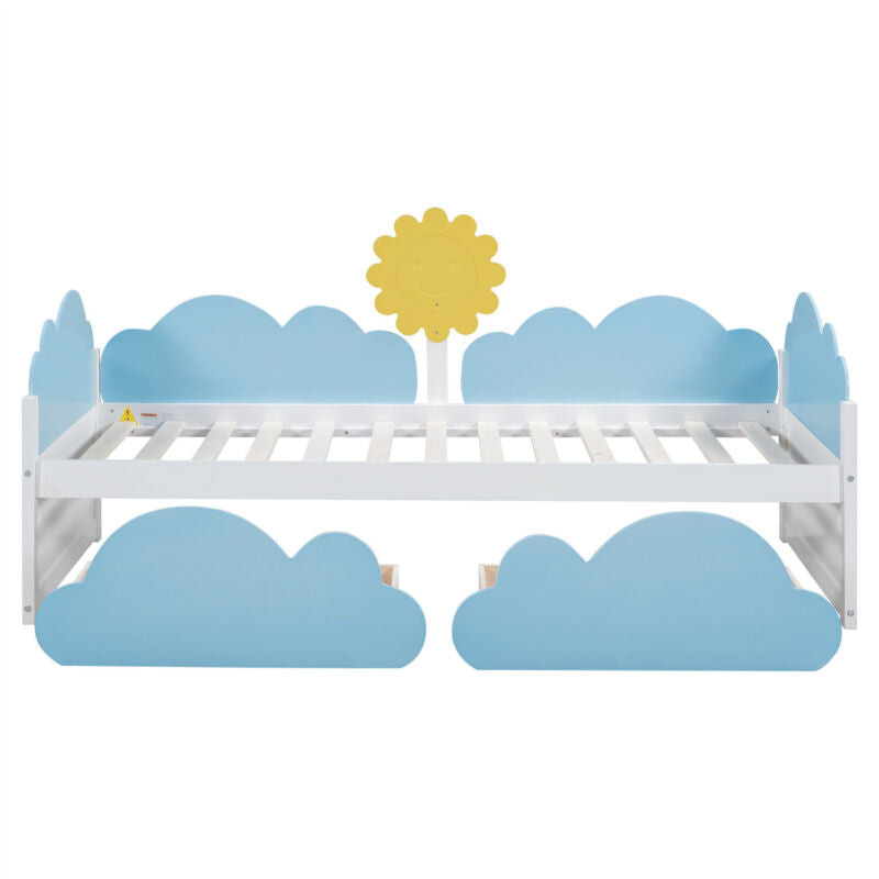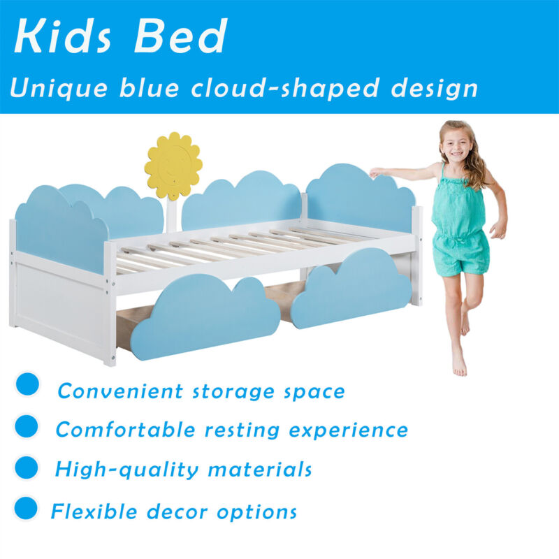 3FT Kids Toddler Bed Single Bed Storage Bed Frame Daybed with 2 Drawers BT