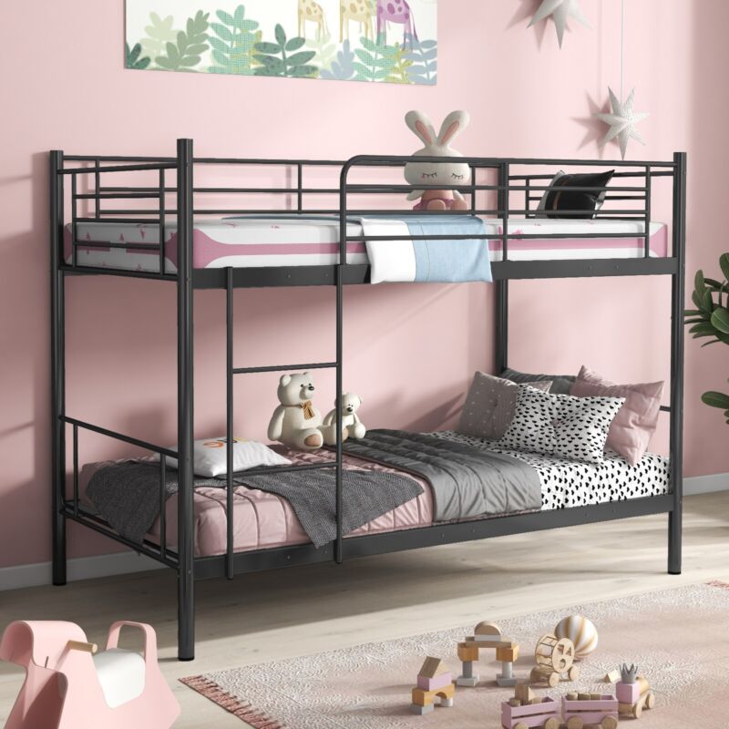 3FT Metal Bunk Bed Single over Single Loft Bed Frame W/ Ladder Safety Guardrail
