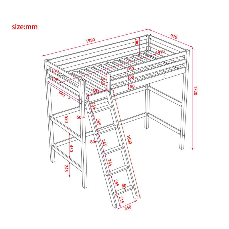 3FT Pine Wood Single Loft Bed Frame High Sleeper Bunk Bed Cabin Bed Bedstead