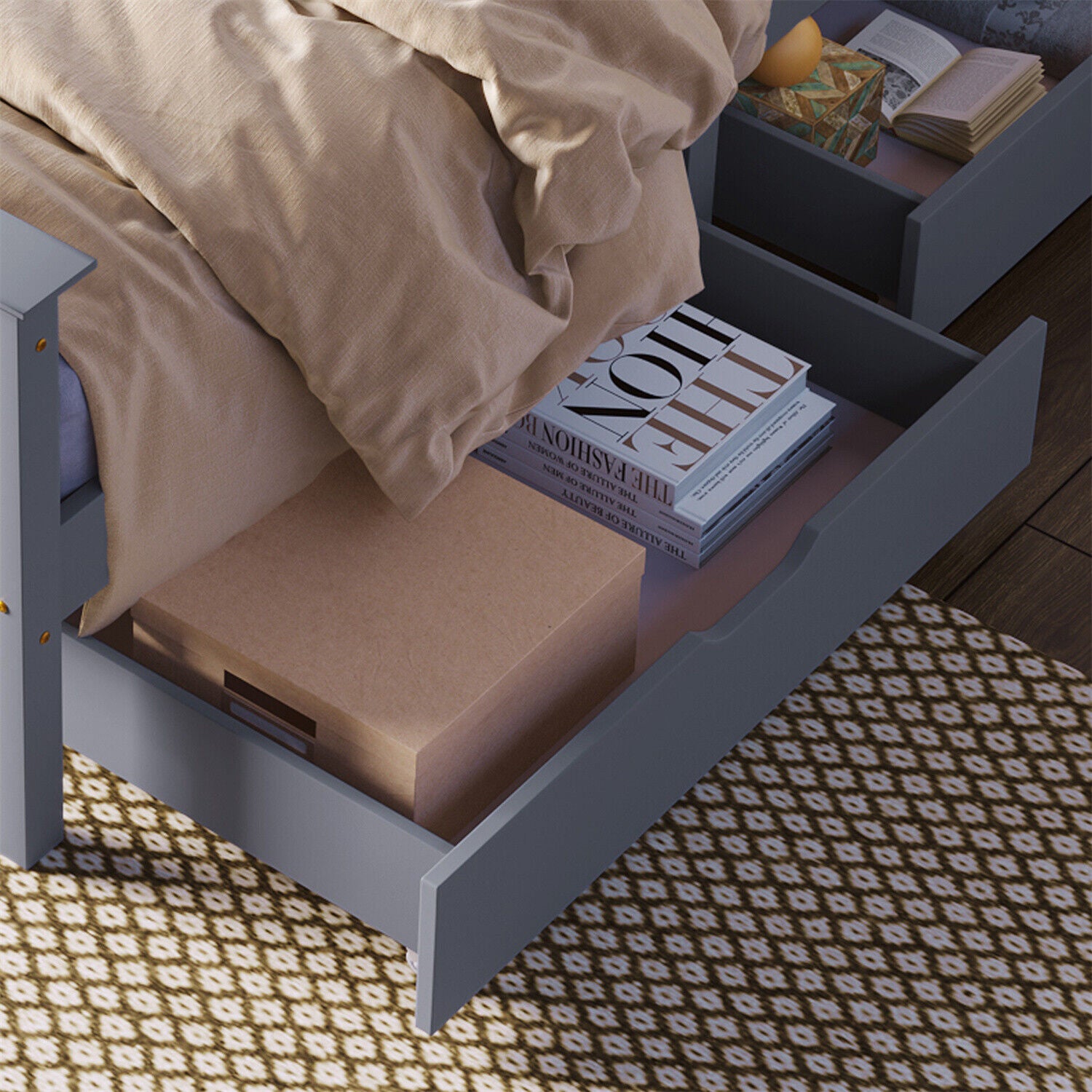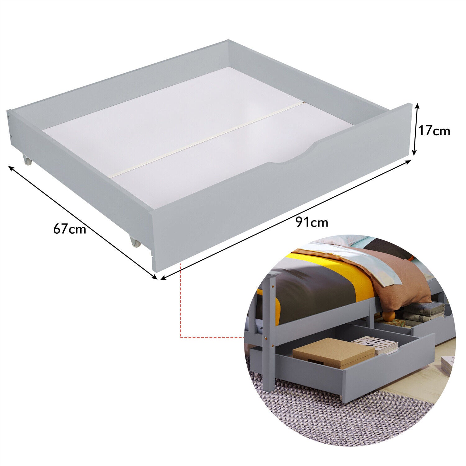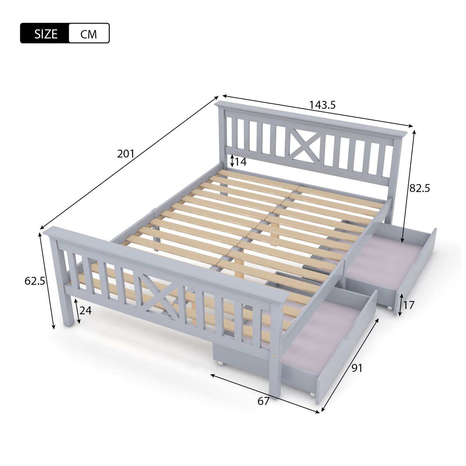 3FT Single 4FT6 Double Wooden Bed Frame with Storage Drawers Solid Pine Wood Bed