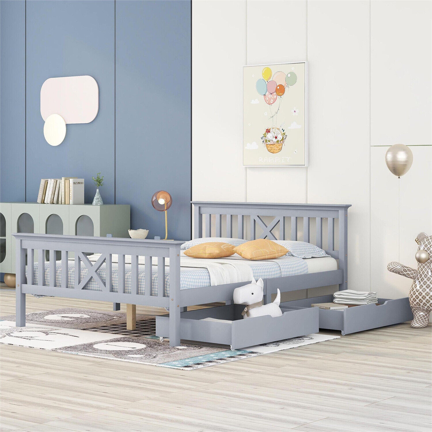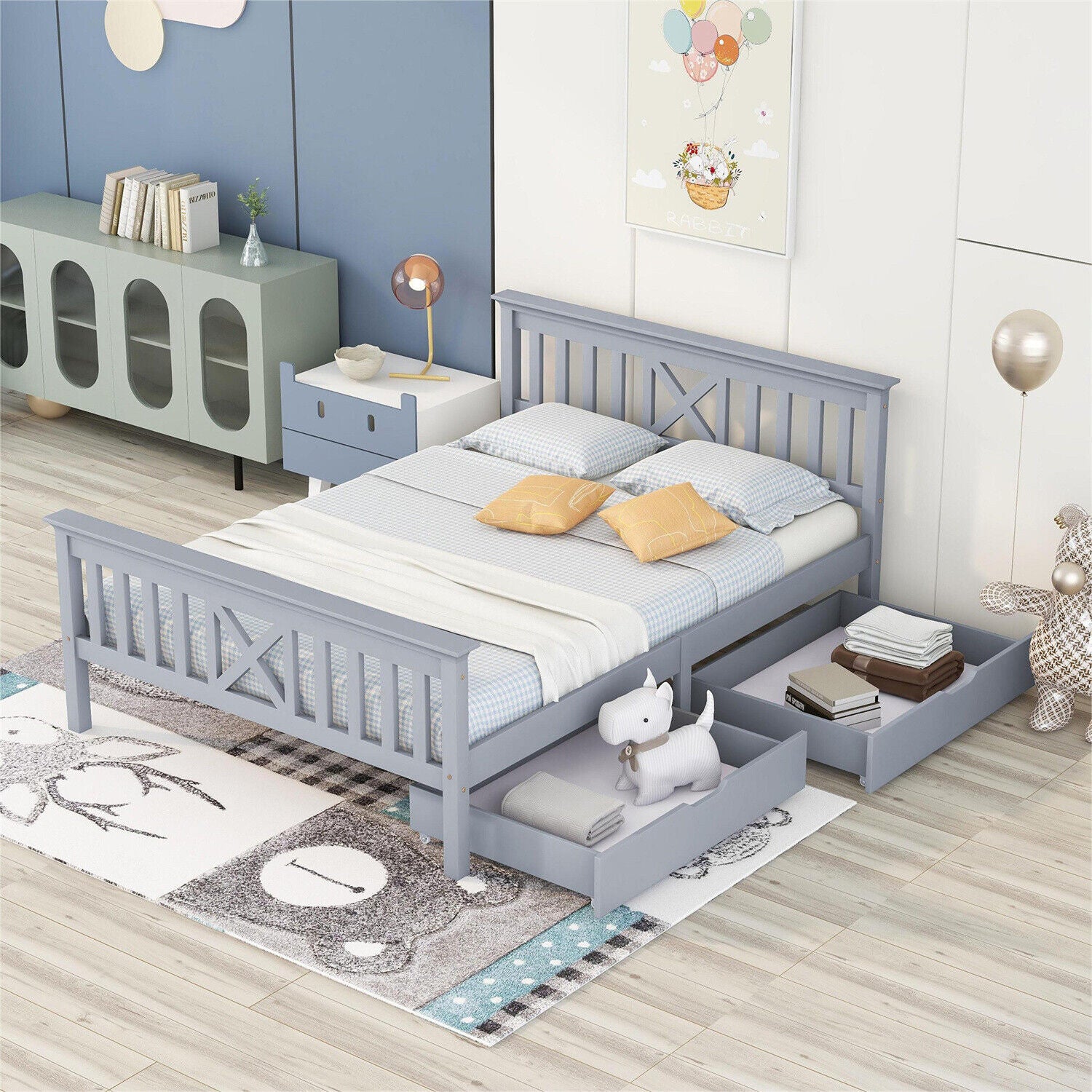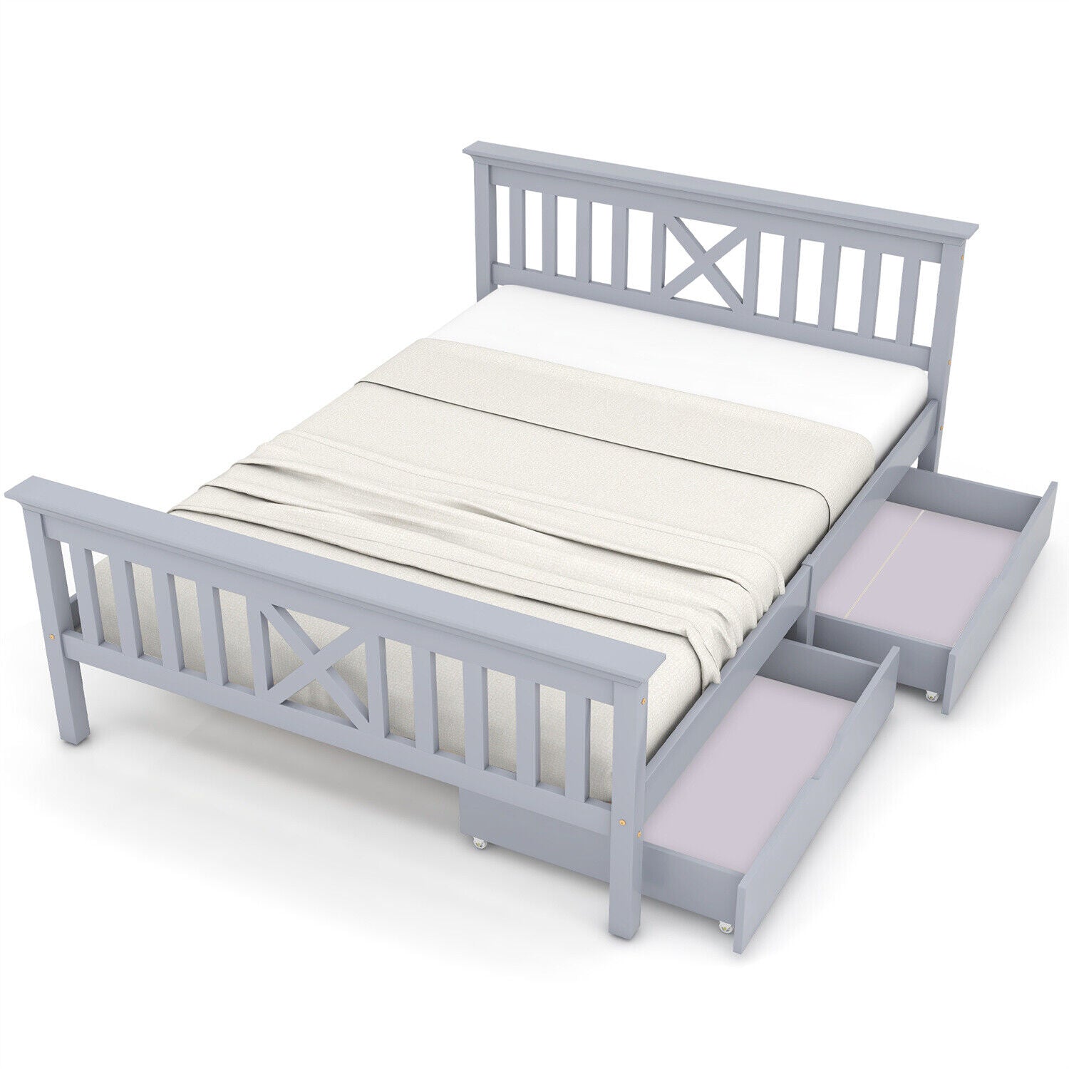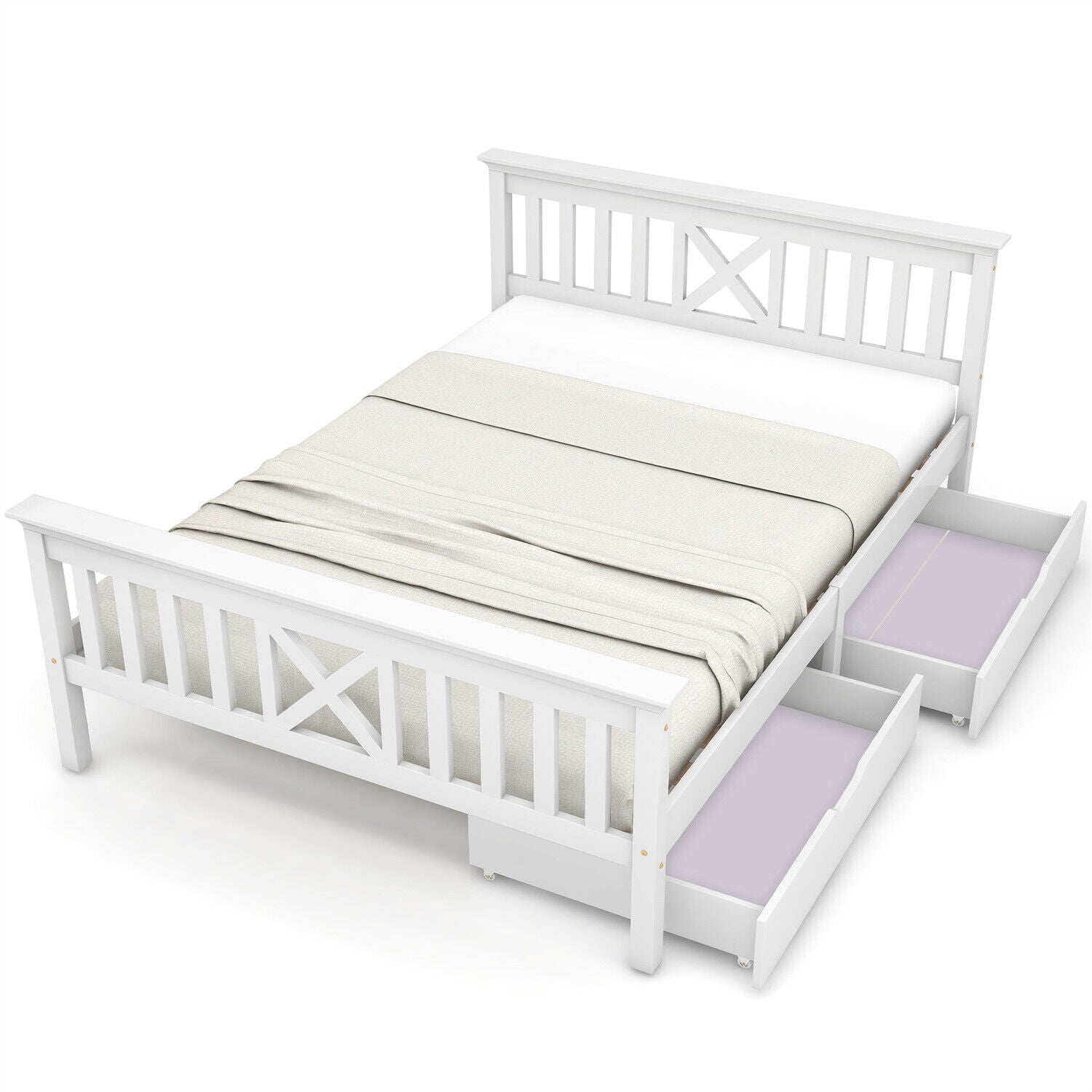 3FT Single 4FT6 Double Wooden Bed Frame with Storage Drawers Solid Pine Wood Bed