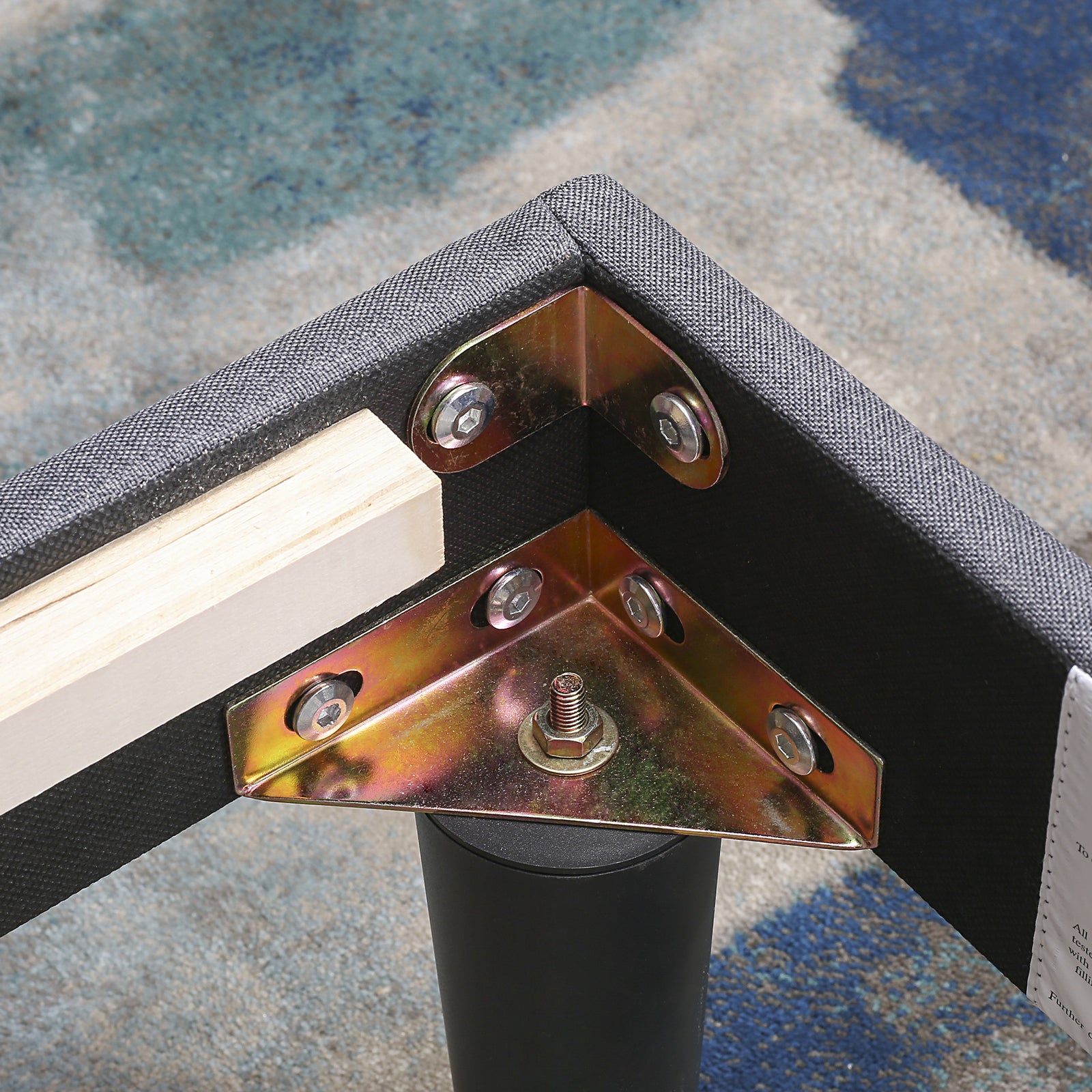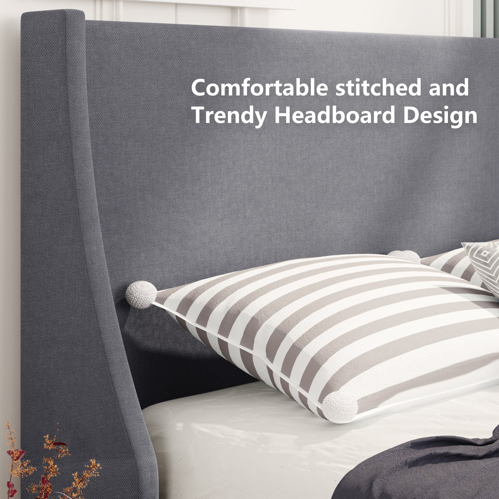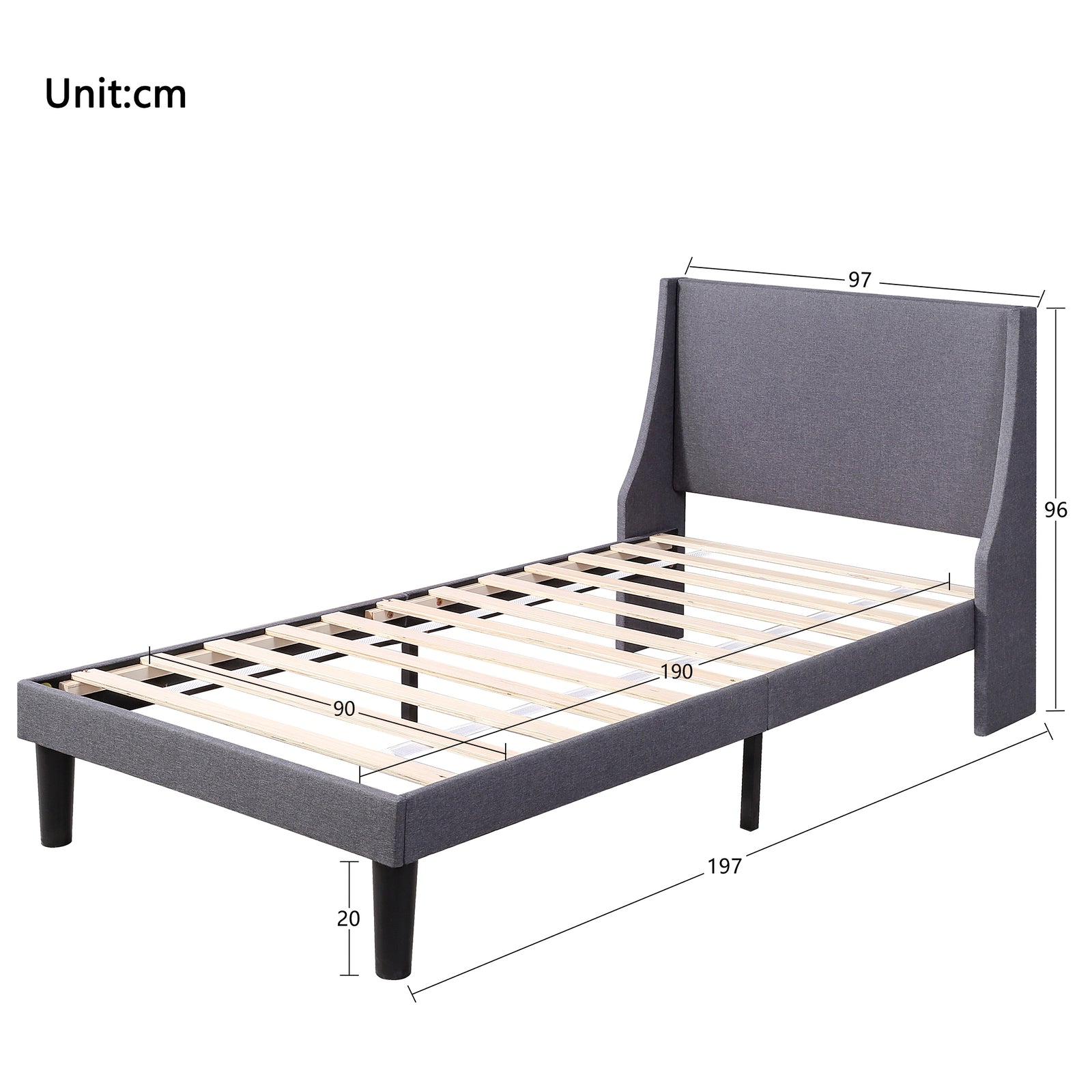 3ft Single Bed Frame Grey With Legs Strong Upholstered Bed with Winged Headboard
