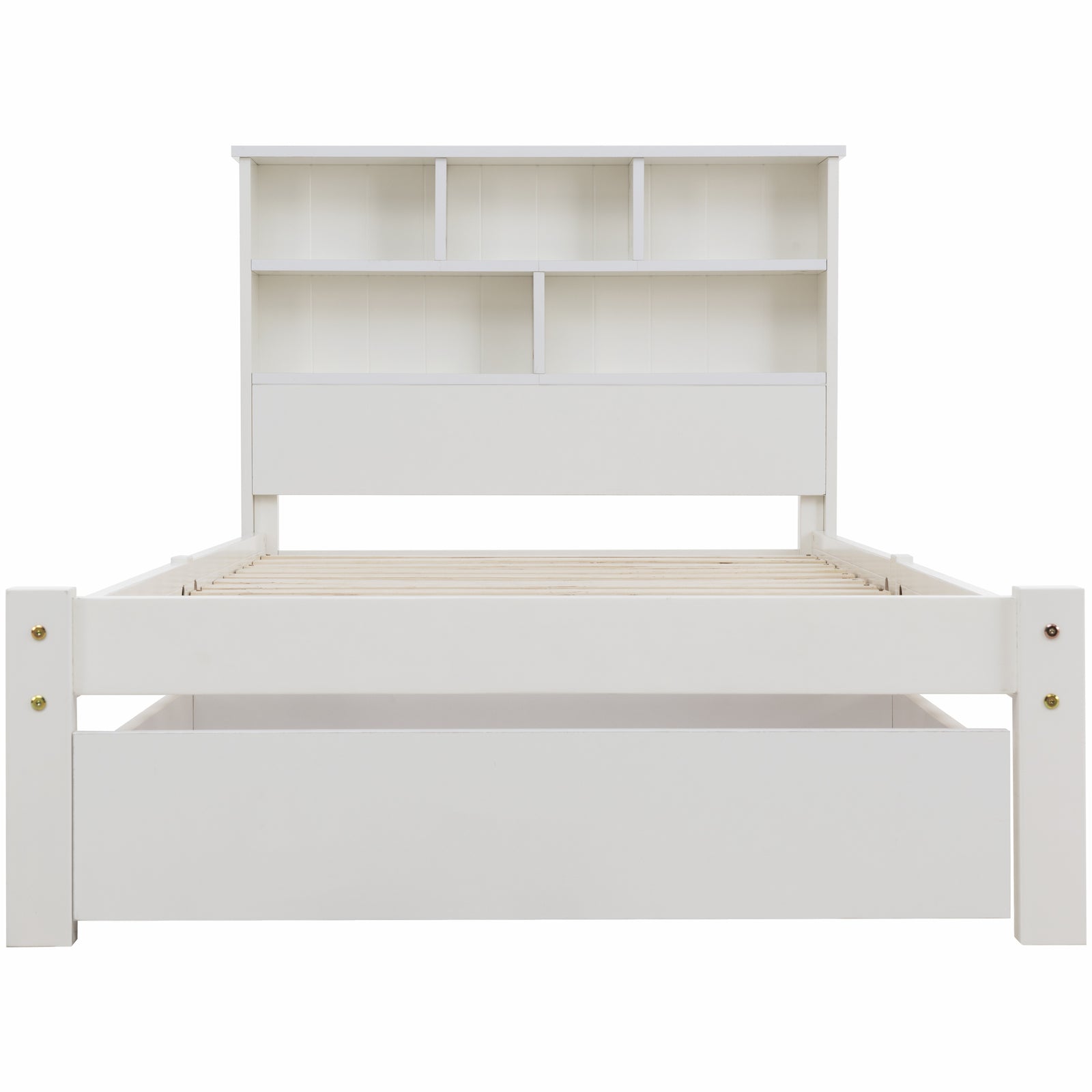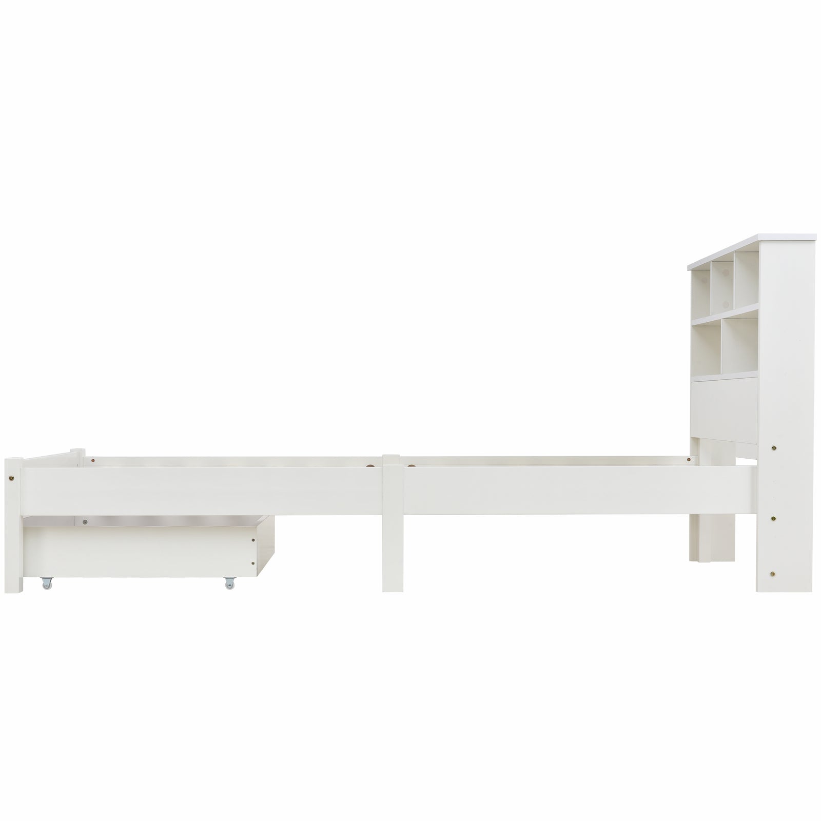 3FT Single Bed Frame Pine Wooden Storage Kids Bed Headboard Shelves Drawer White