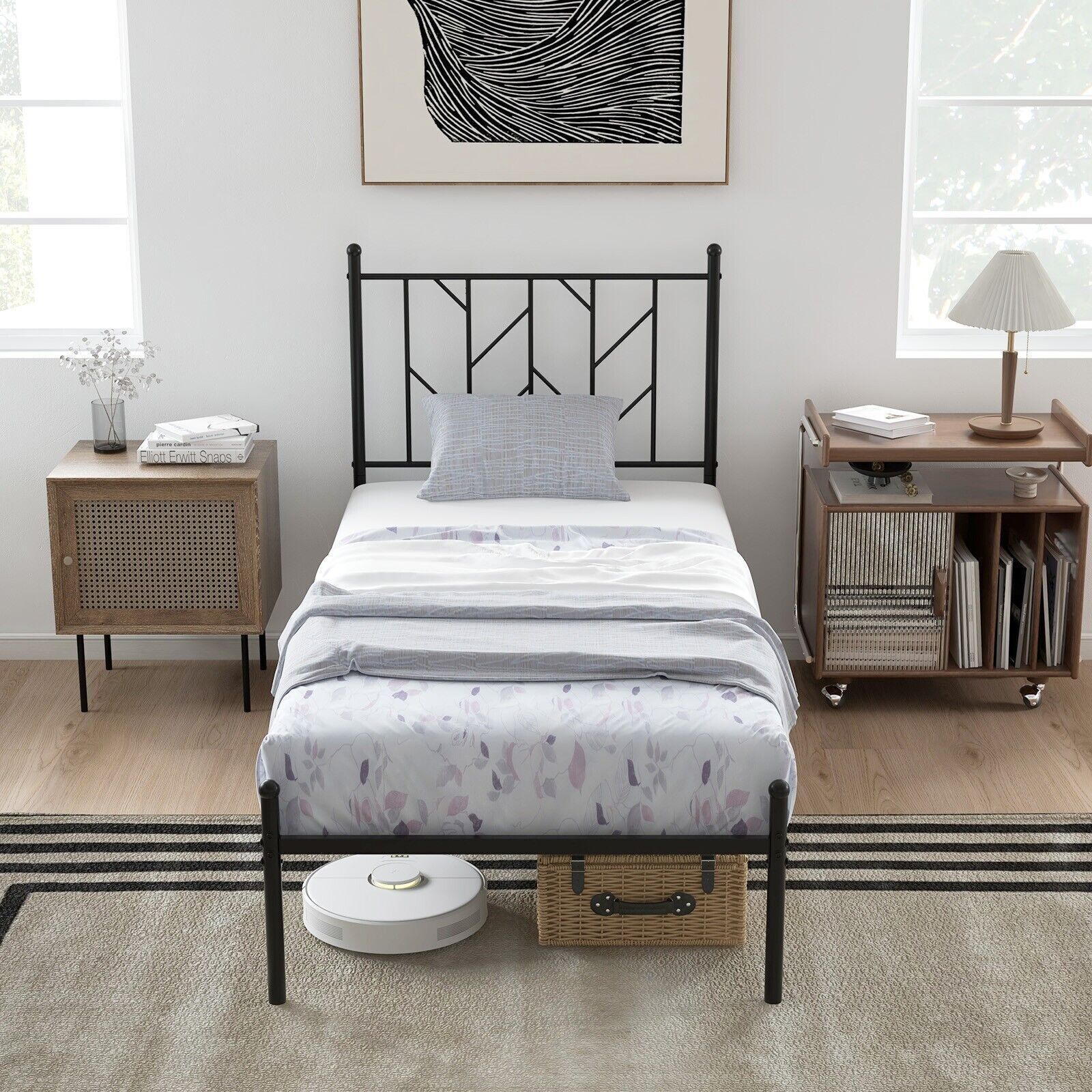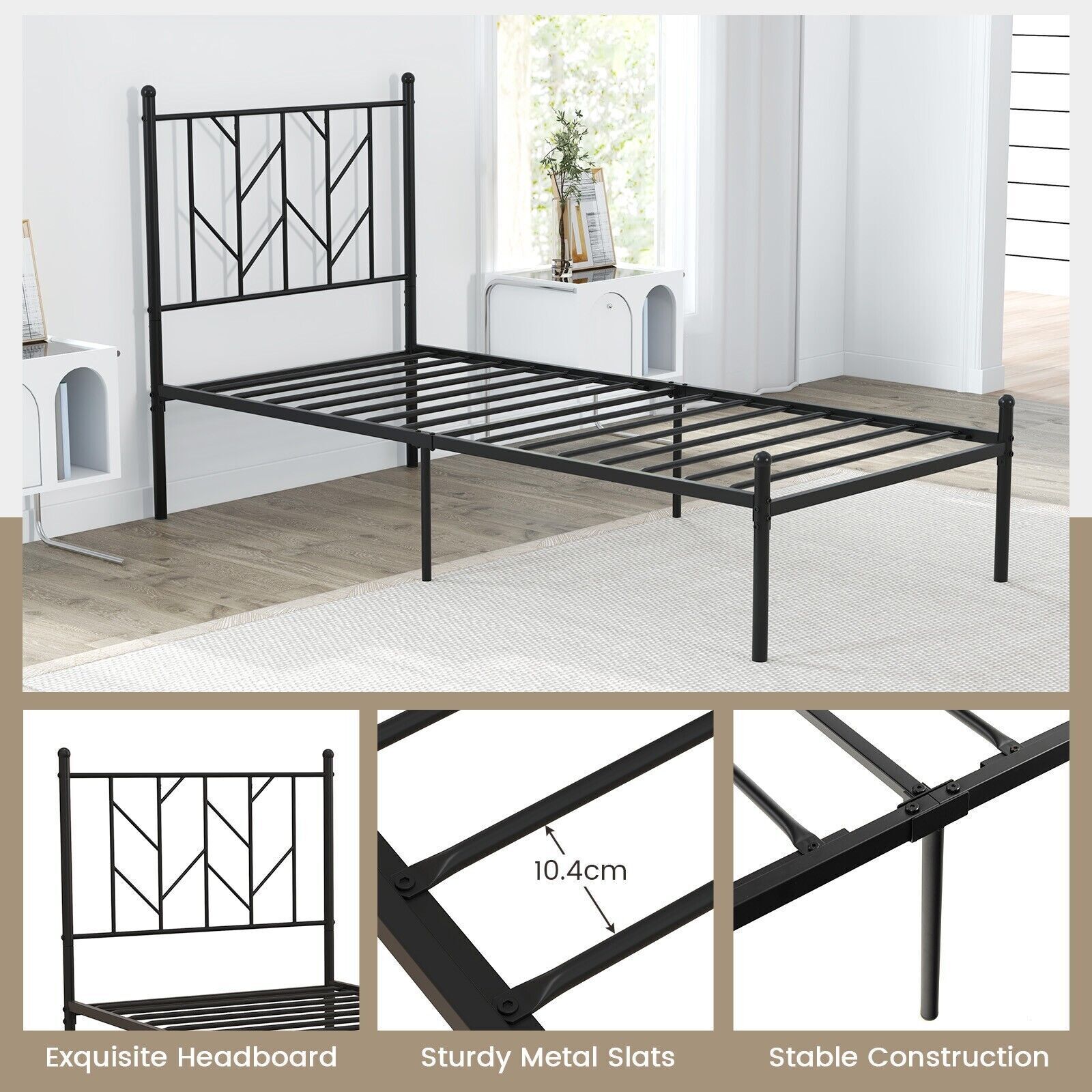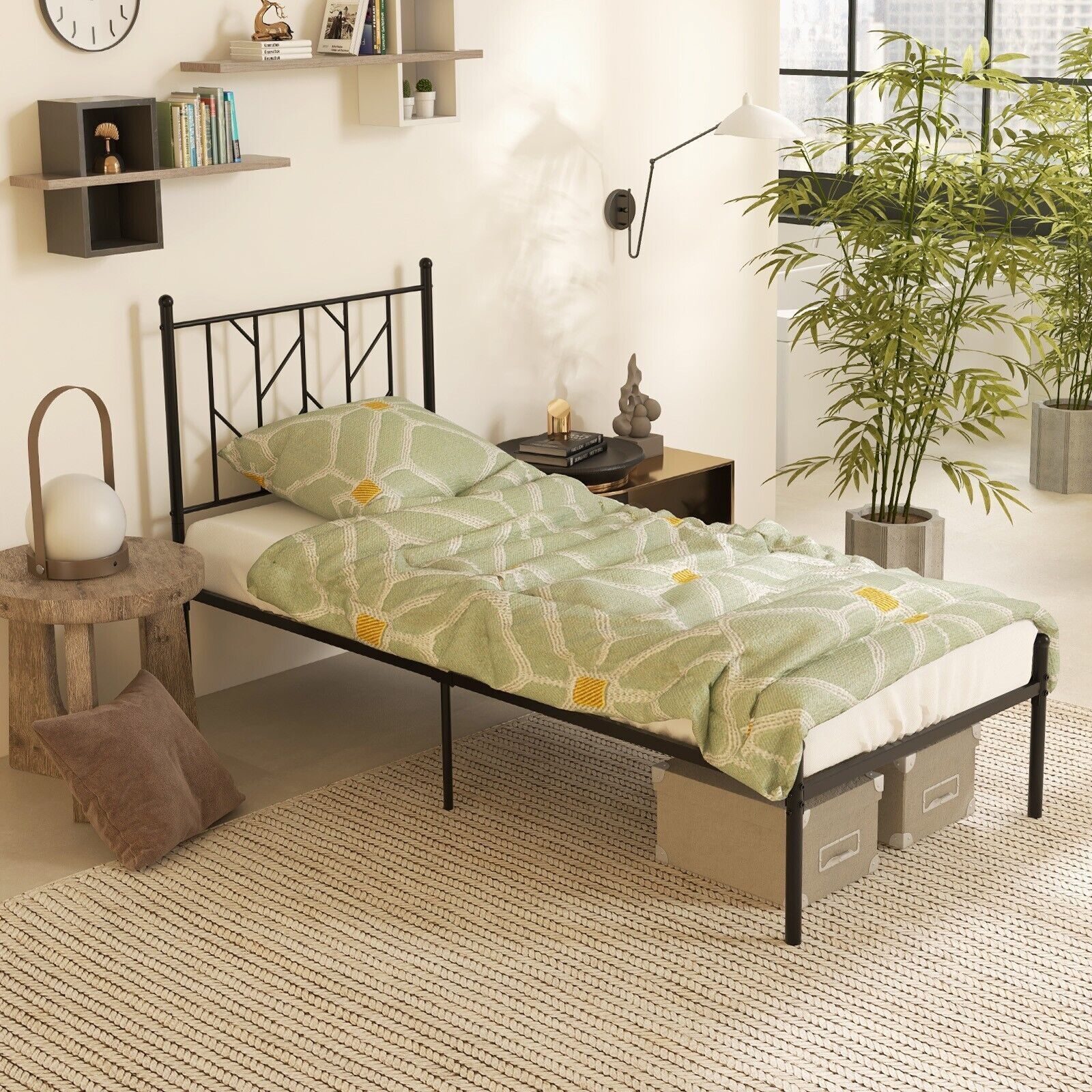 3FT Single Bed Frame with Headboard Metal Platform Bed w/30 cm Under Bed Storage