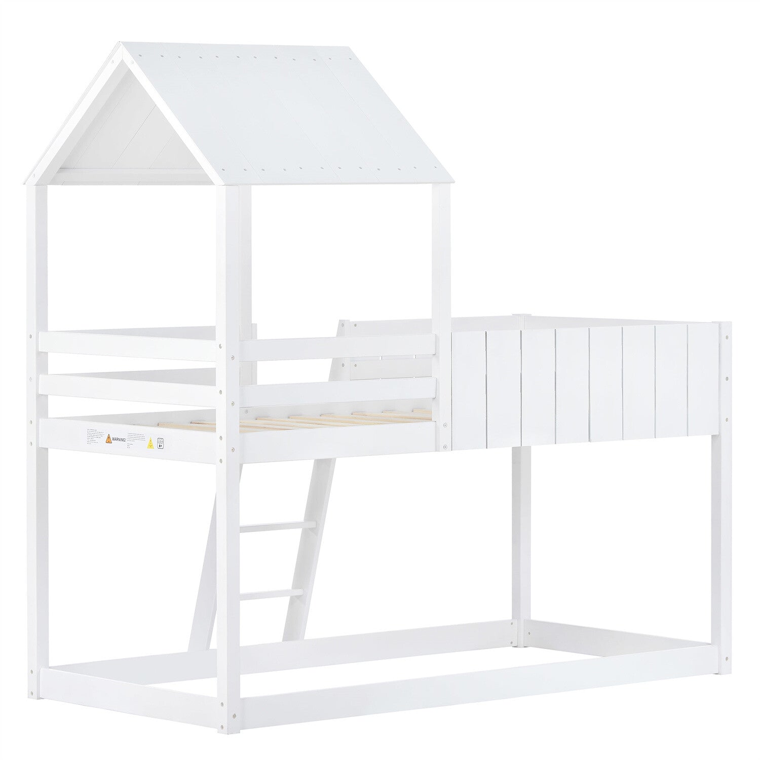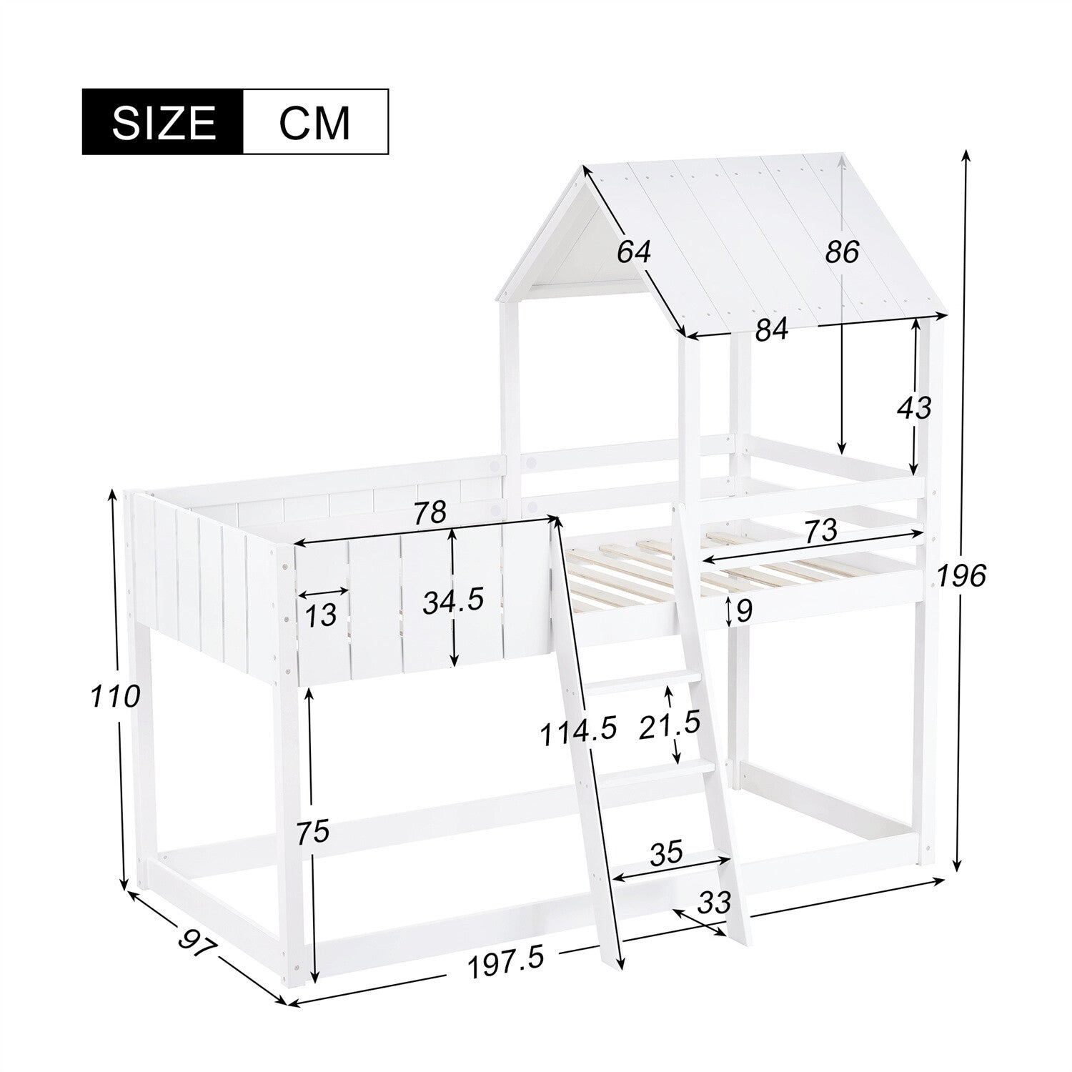 3FT Single Bed Frames Wooden Treehouse Single Bunk Bed Kids Sleeper House Canopy