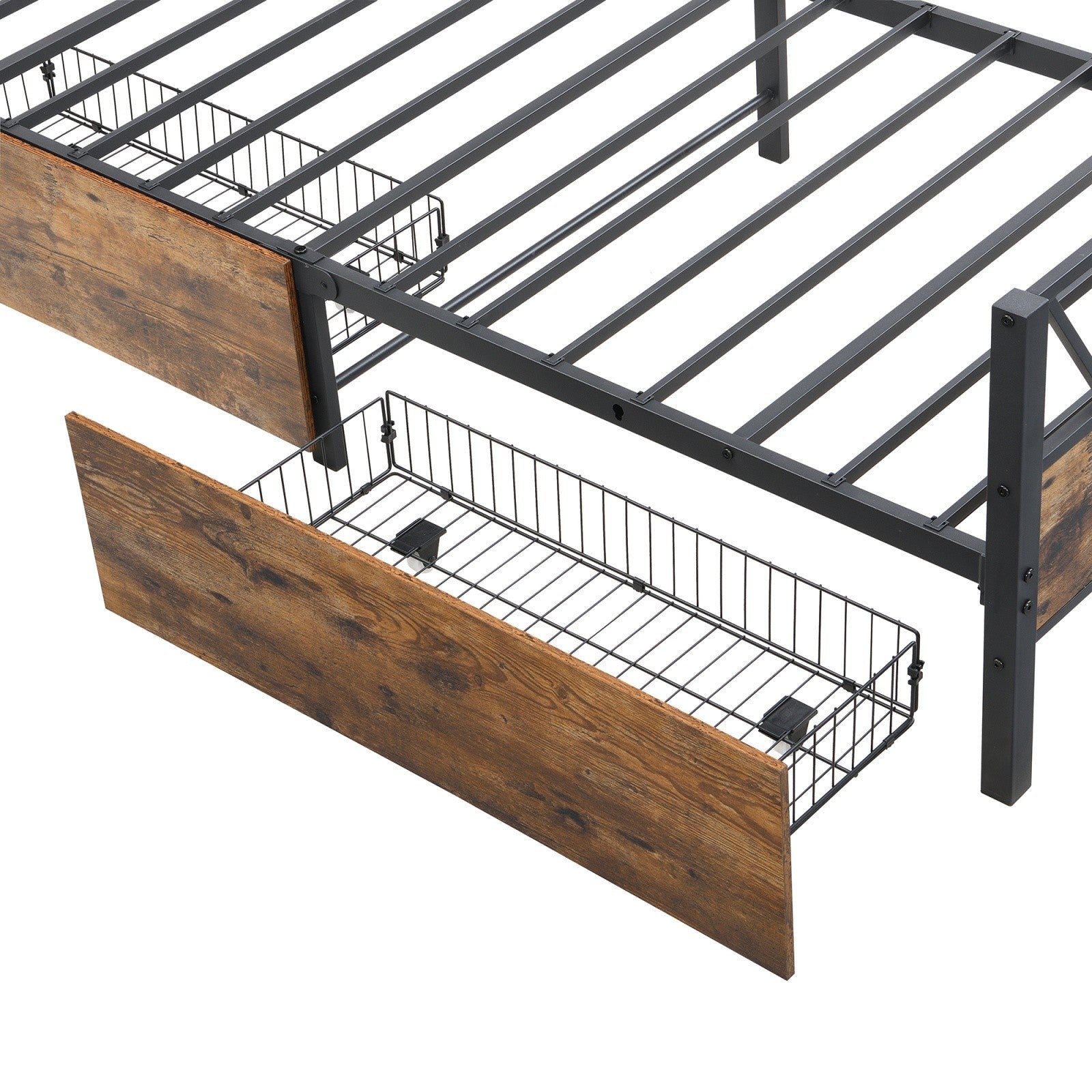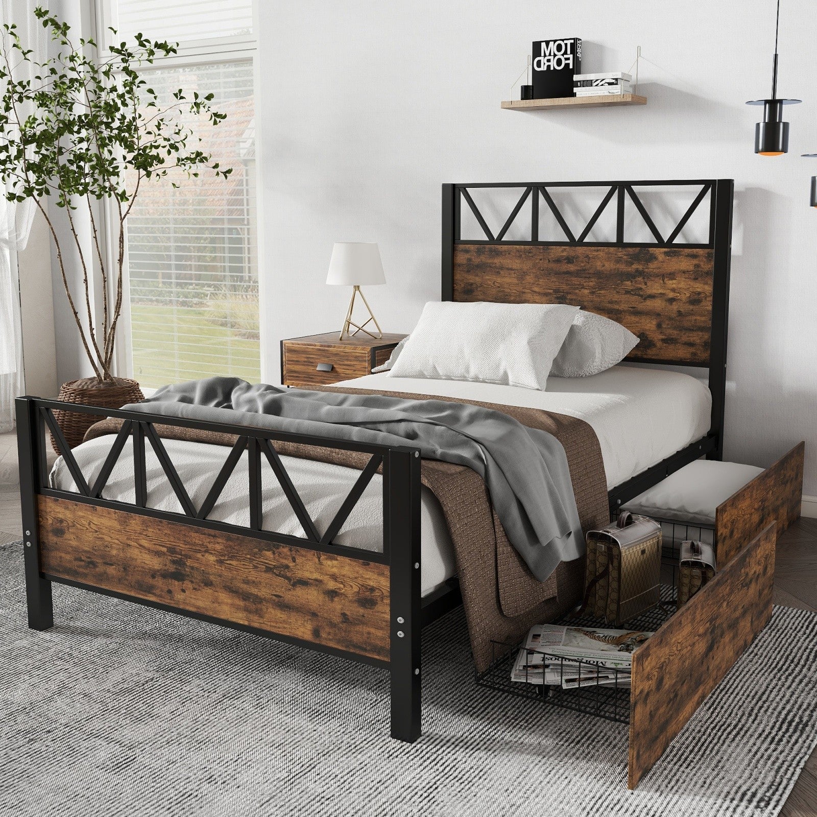 3ft Single Bed Solid Bed Frame with Headboard and Footboard, 2 Storage Drawers