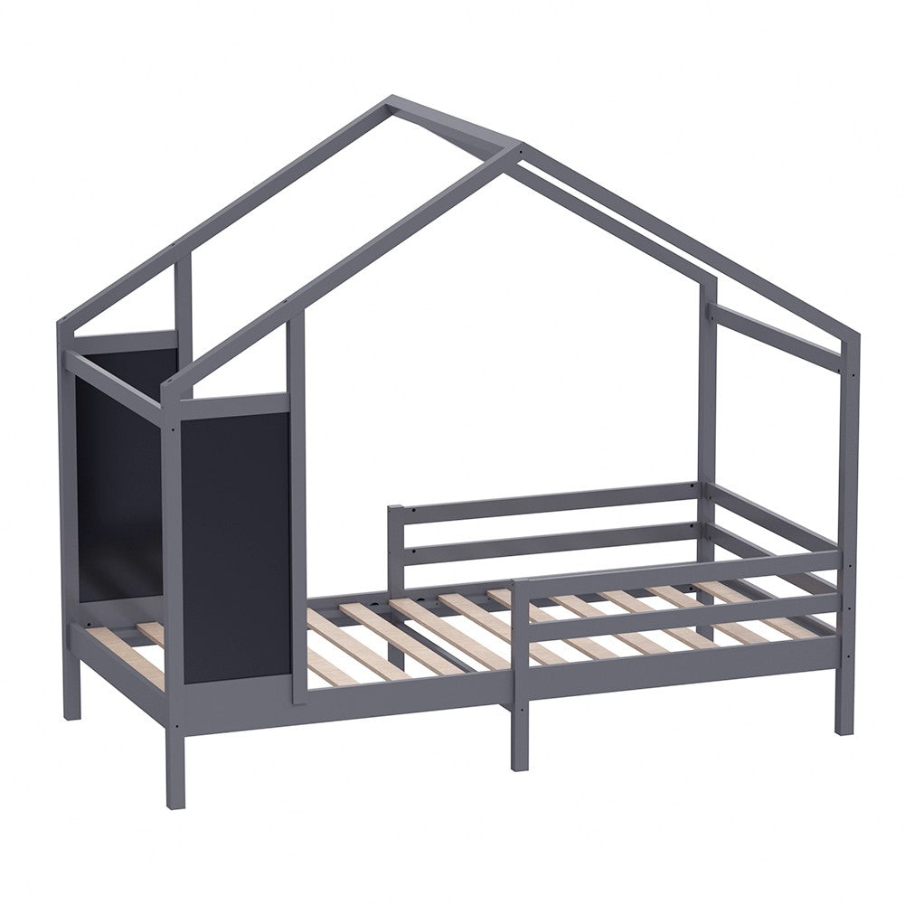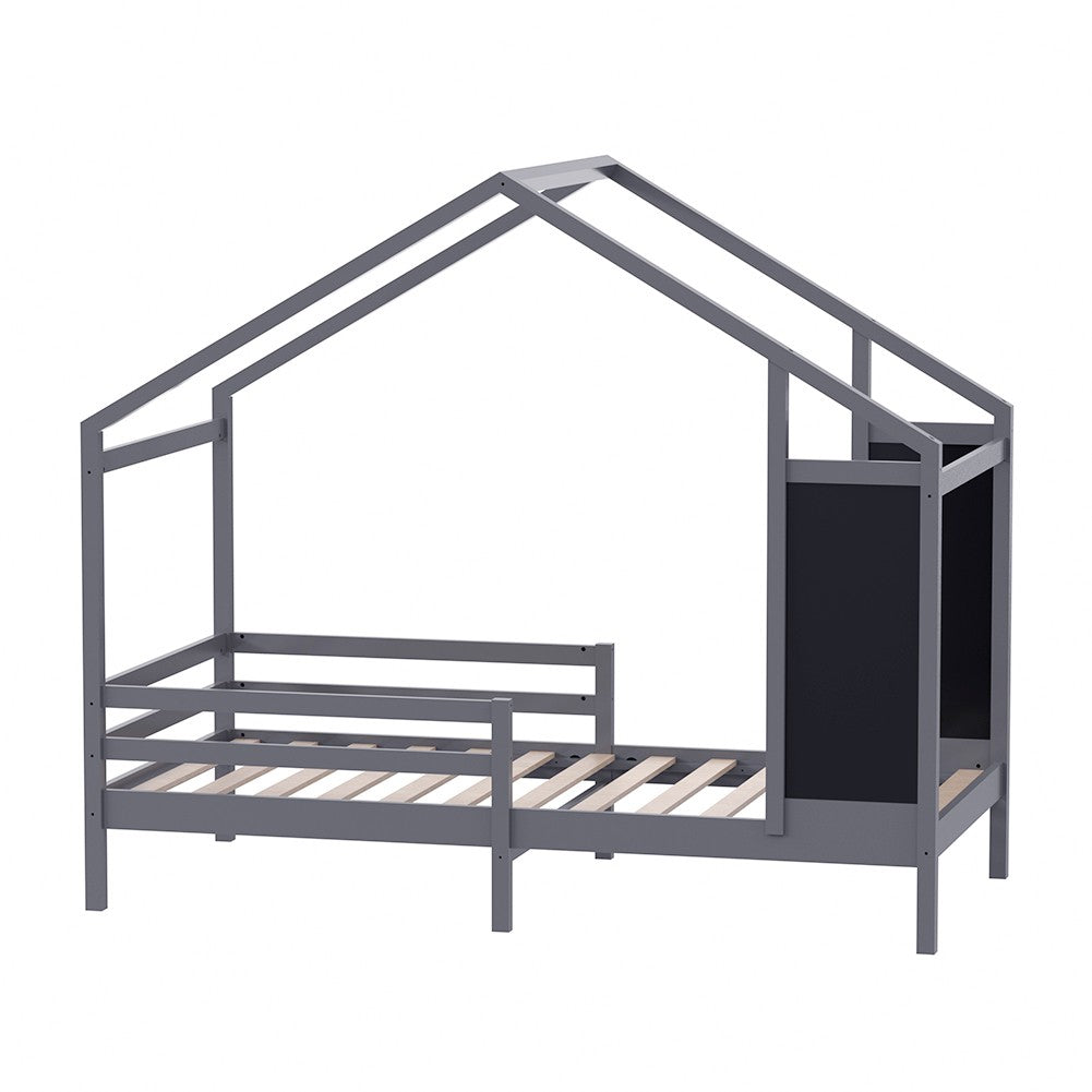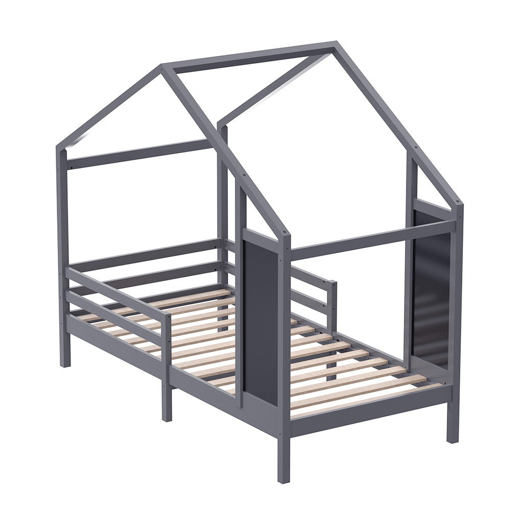 3ft Single Kids House Bed Frame Solid Pine, Grey 197x97cm, Mattress Not Included