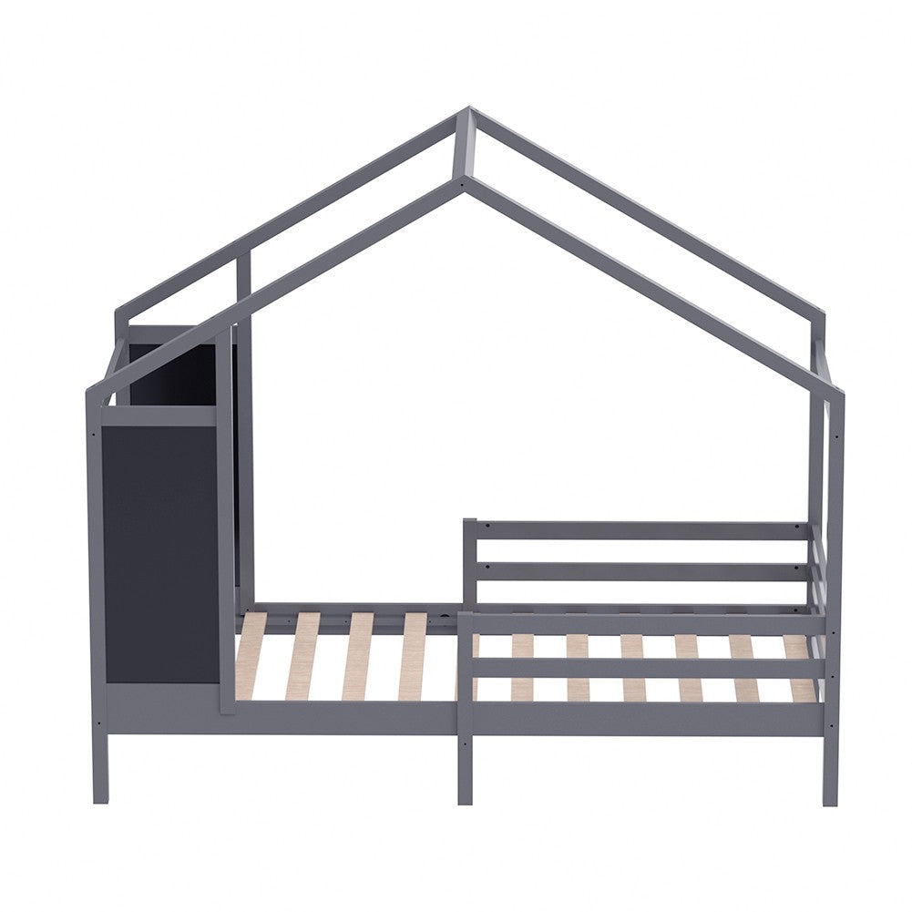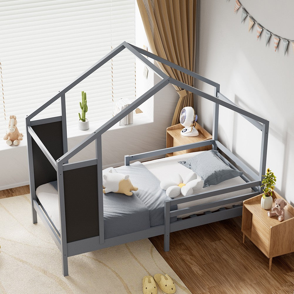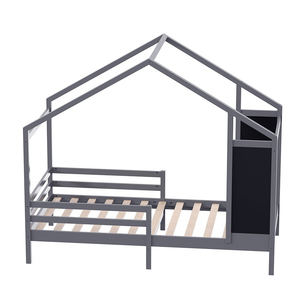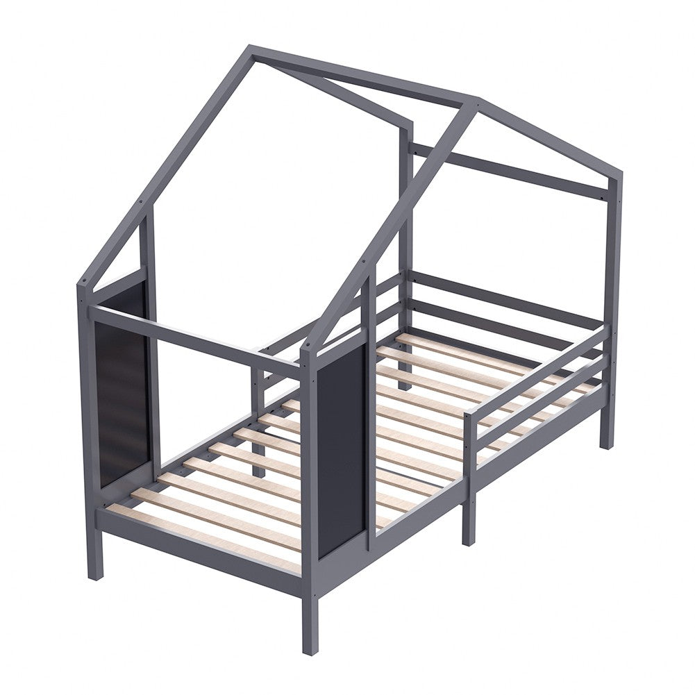 3ft Single Kids House Bed Frame Solid Pine, Grey 197x97cm, Mattress Not Included