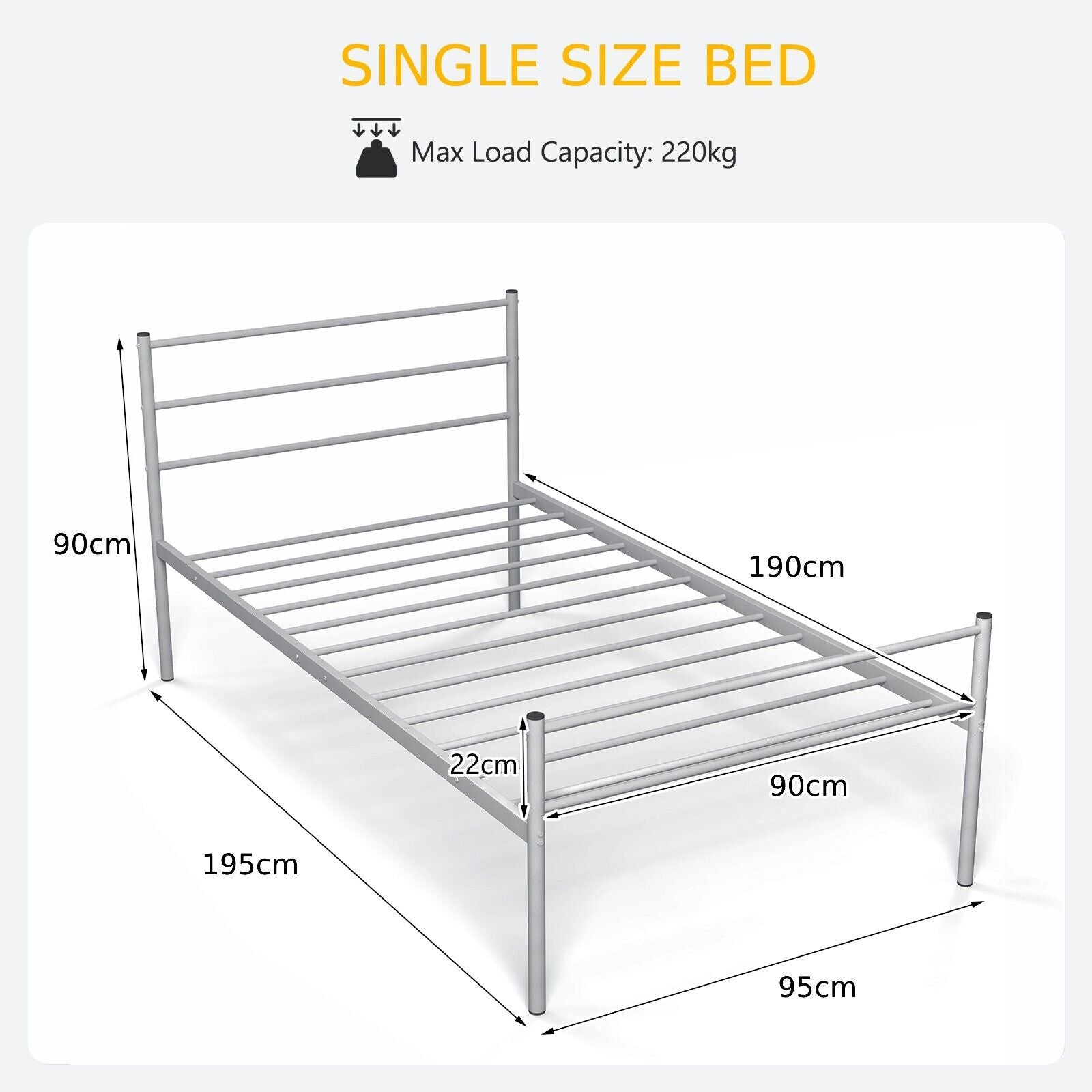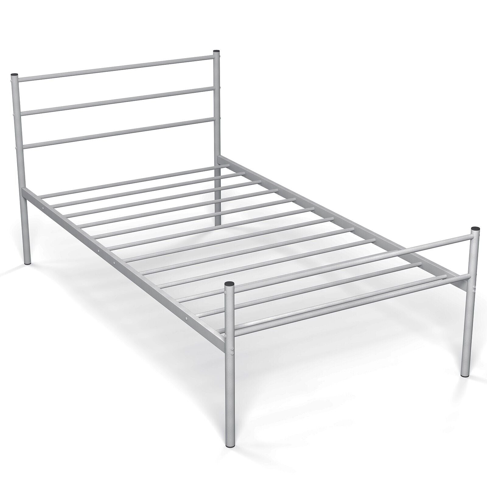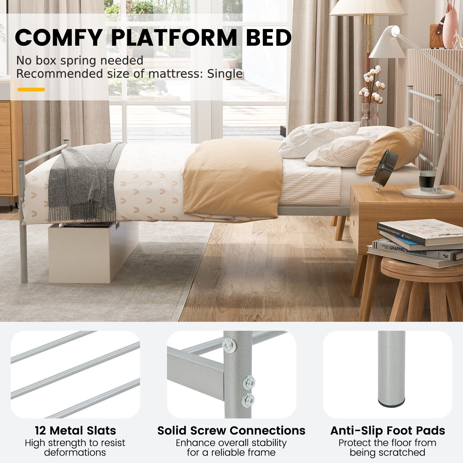 3FT Single Metal Bed Frame Heavy-duty Slatted Platform Bed Headboard & Footboard
