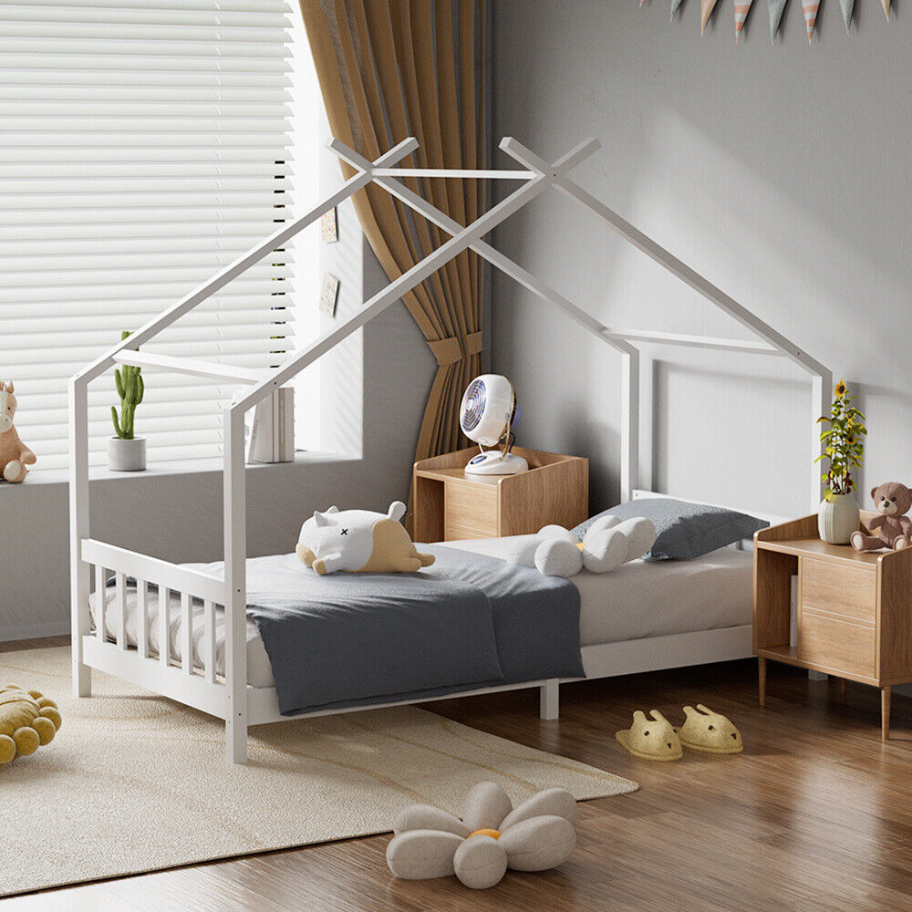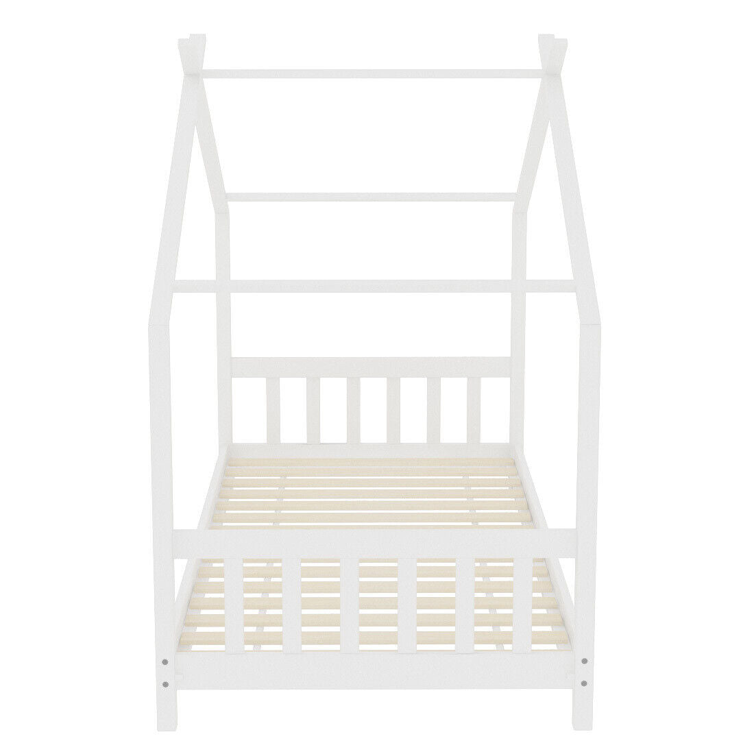 3ft Single Pine Wood House Bed Frame Children Kids Sleeper Canopy Bed Base White