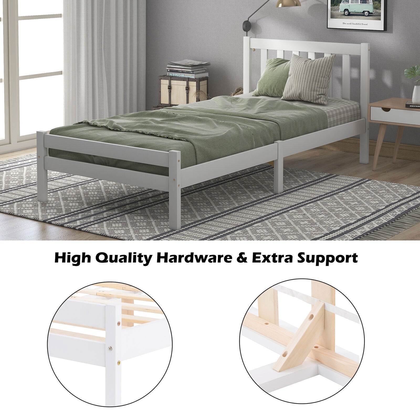 3ft Single Size Bed Pine Solid Wooden Bed Frame for Adults Kids Teenagers White