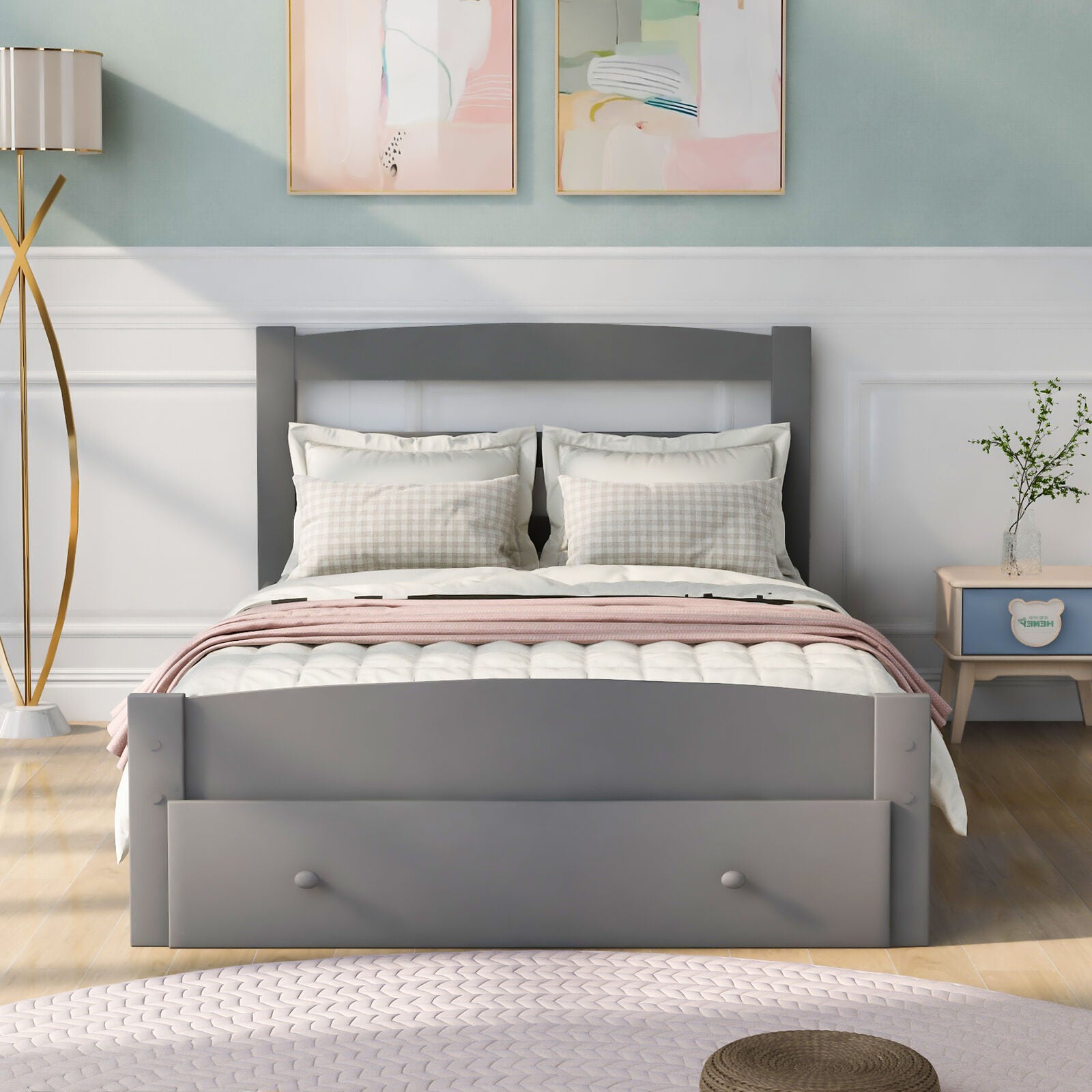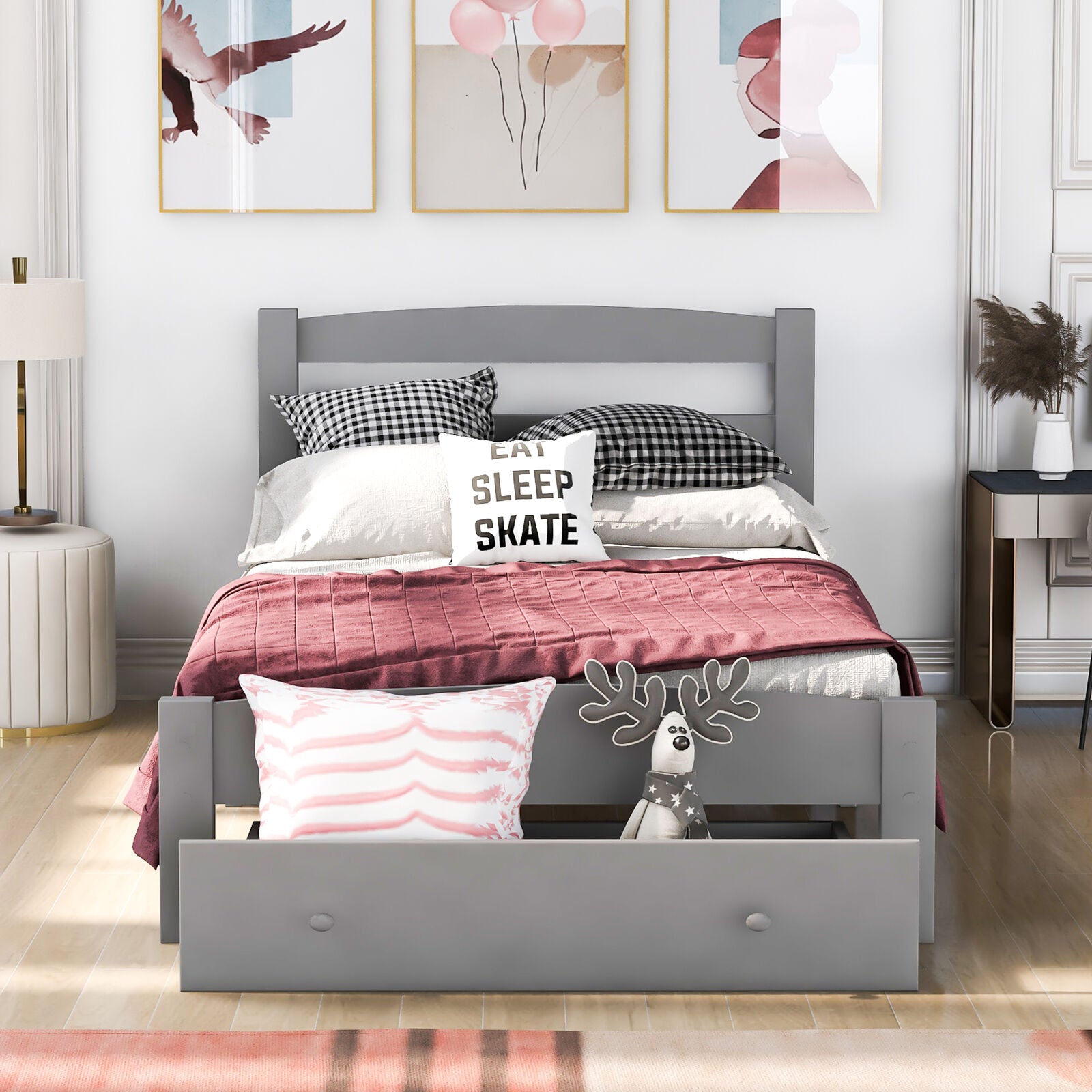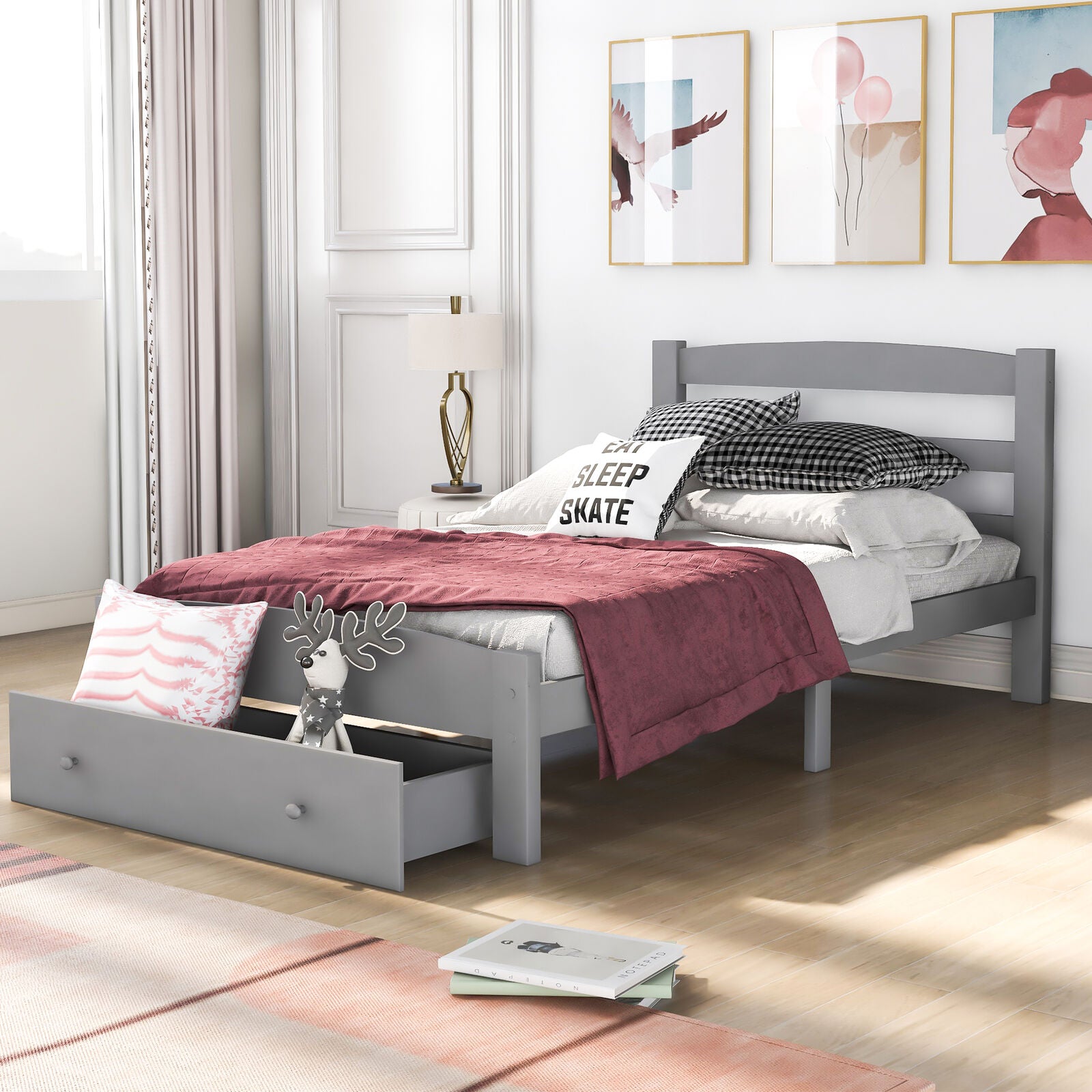 3FT SINGLE SIZE WOODEN BED WITH STORAGE DRAWER SOLID PINE WOOD BED FRAME GREY