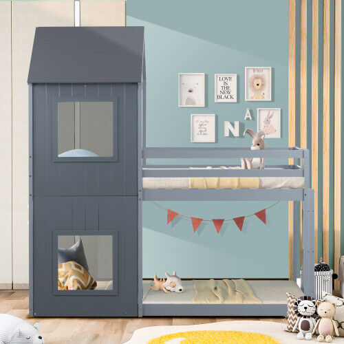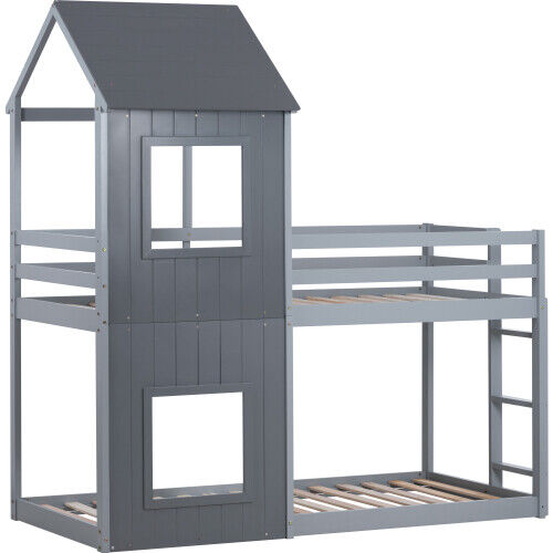 3FT Single Treehouse Wooden Bed Frame Bunk Beds Cabin Kids Children High Sleeper