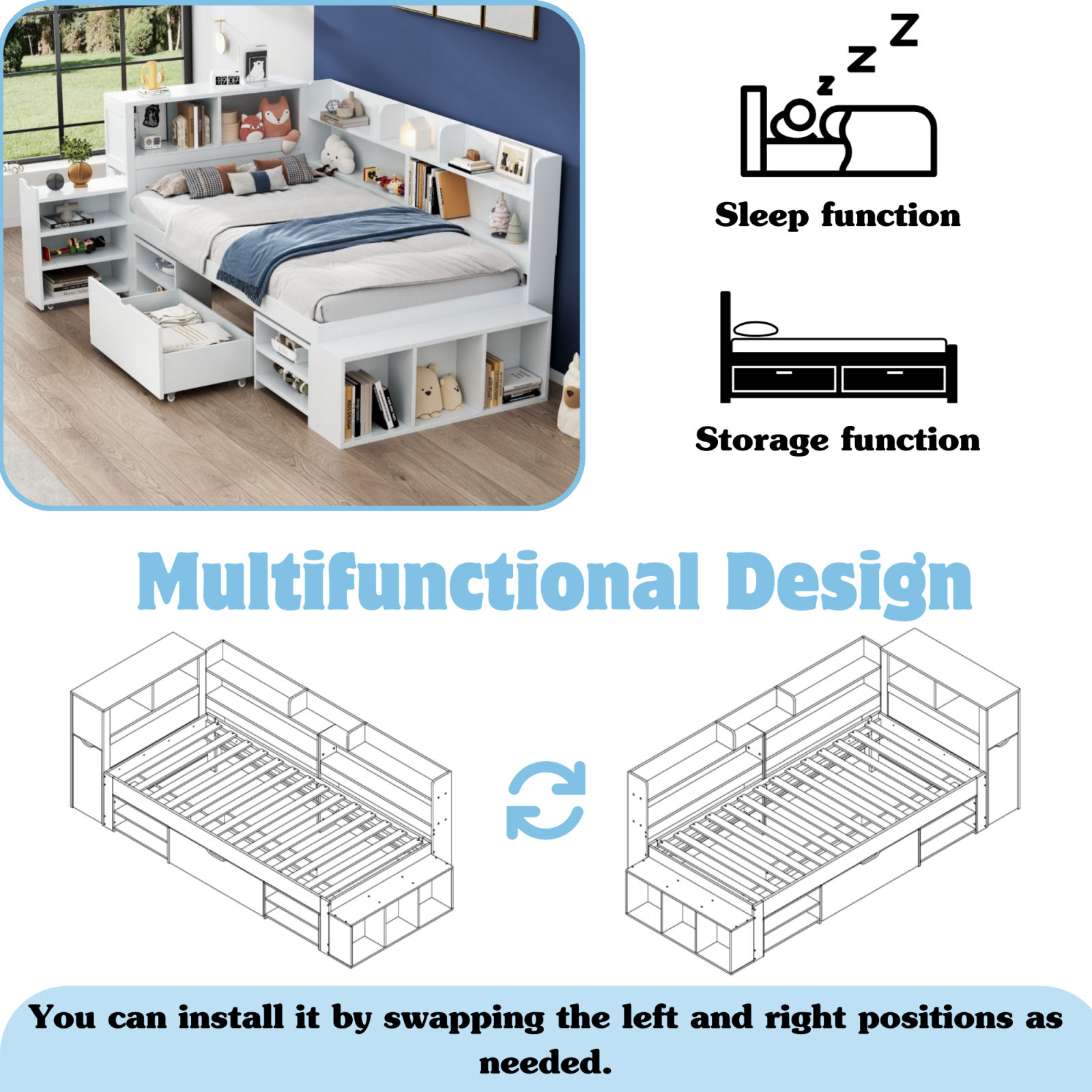 3FT SINGLE WOODEN STORAGE BED FRAME WITH DRAWER AND CABINETS FOR KIDS, TEENAGERS