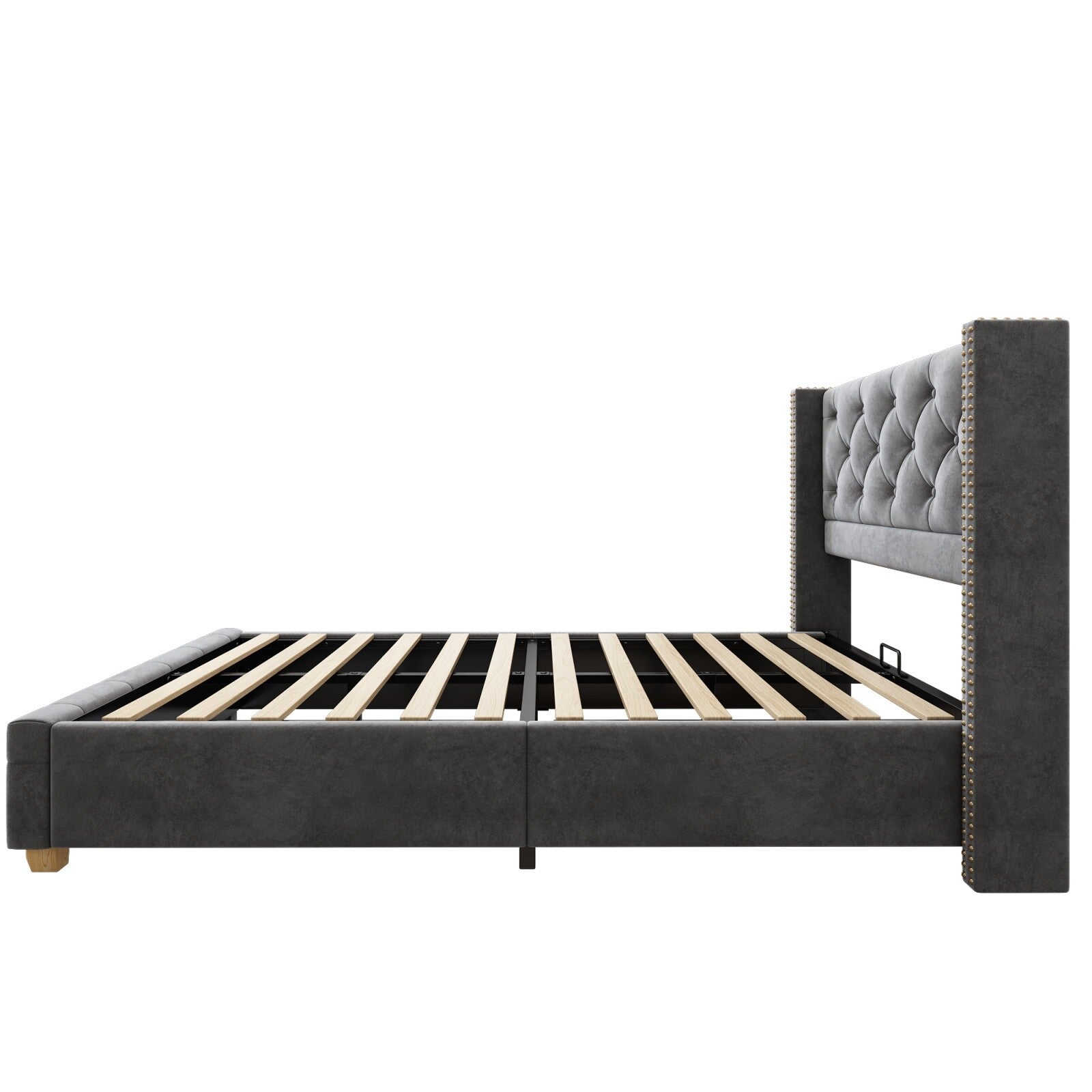 3FT UPHOLSTERED SINGLE BED FRAME WITH VELVET TUFTED HEADBOARD & WING SIDE GREY