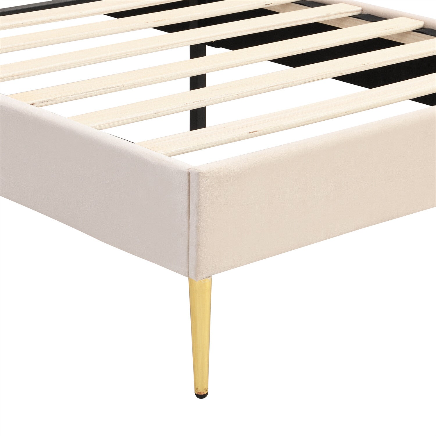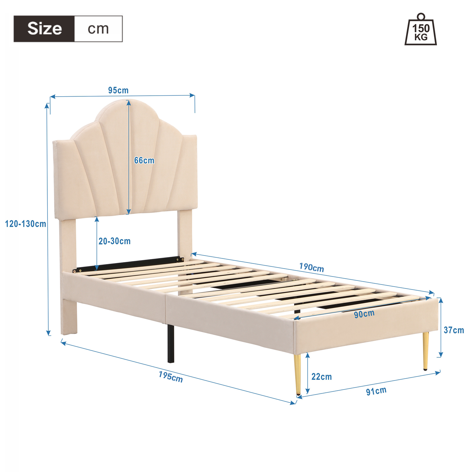 3ft Velvet Upholstered Single Bed Frame with Headboard & Storage Bench, Beige