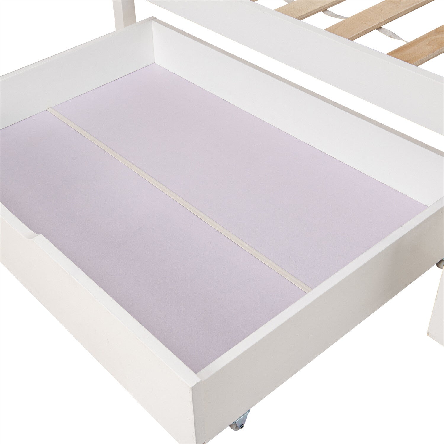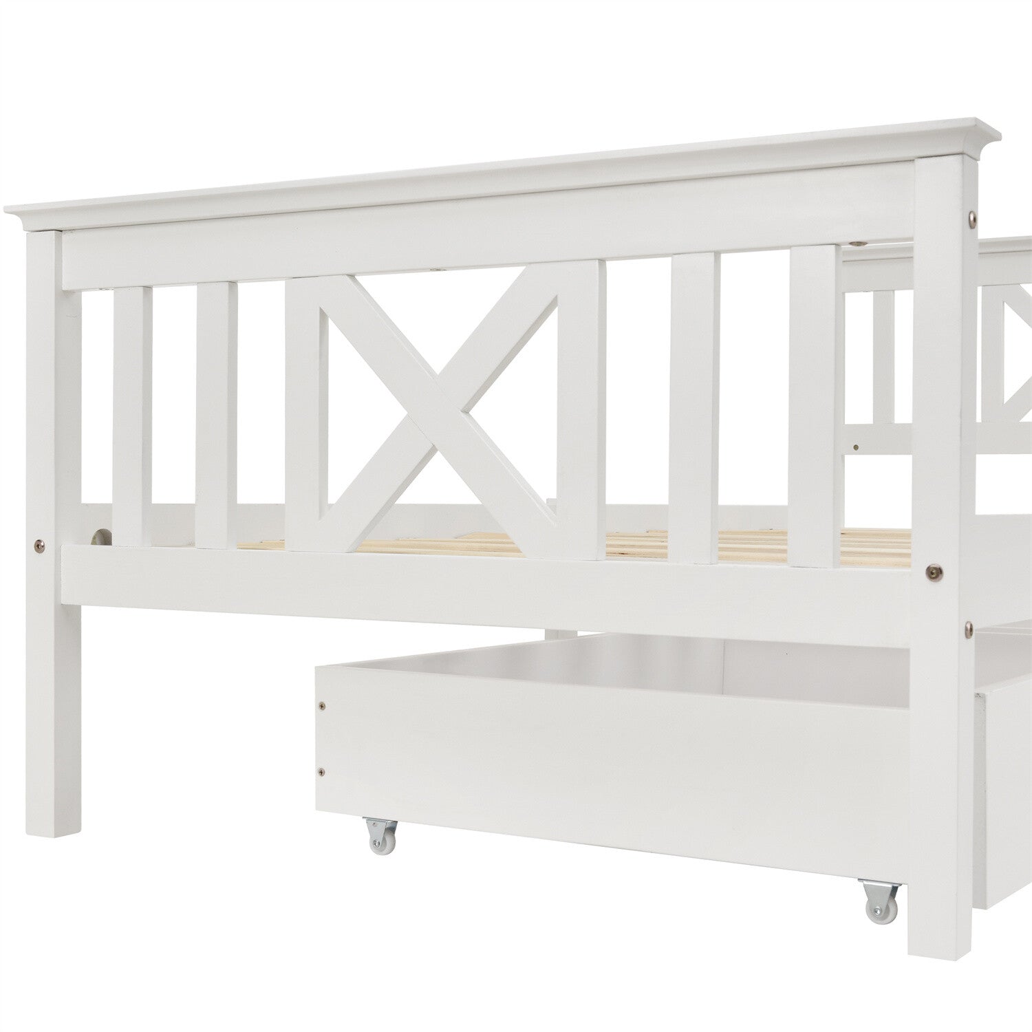 3ft Wooden Single Bed Frame White Solid Wood Bed w/Storage Drawers Bed Furniture