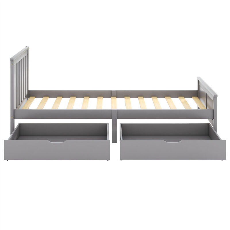 3ft Wooden Solid Gray Pine Storage Bed with 2 Drawers Bed Furniture Frame QG