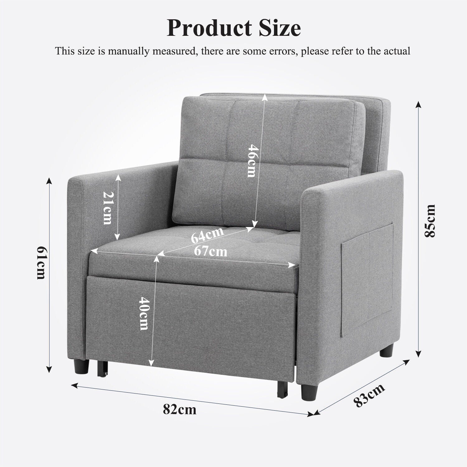 3in1 Folding Sofa Bed Convertible Sleeper Chair Single Armchair With Comfortable
